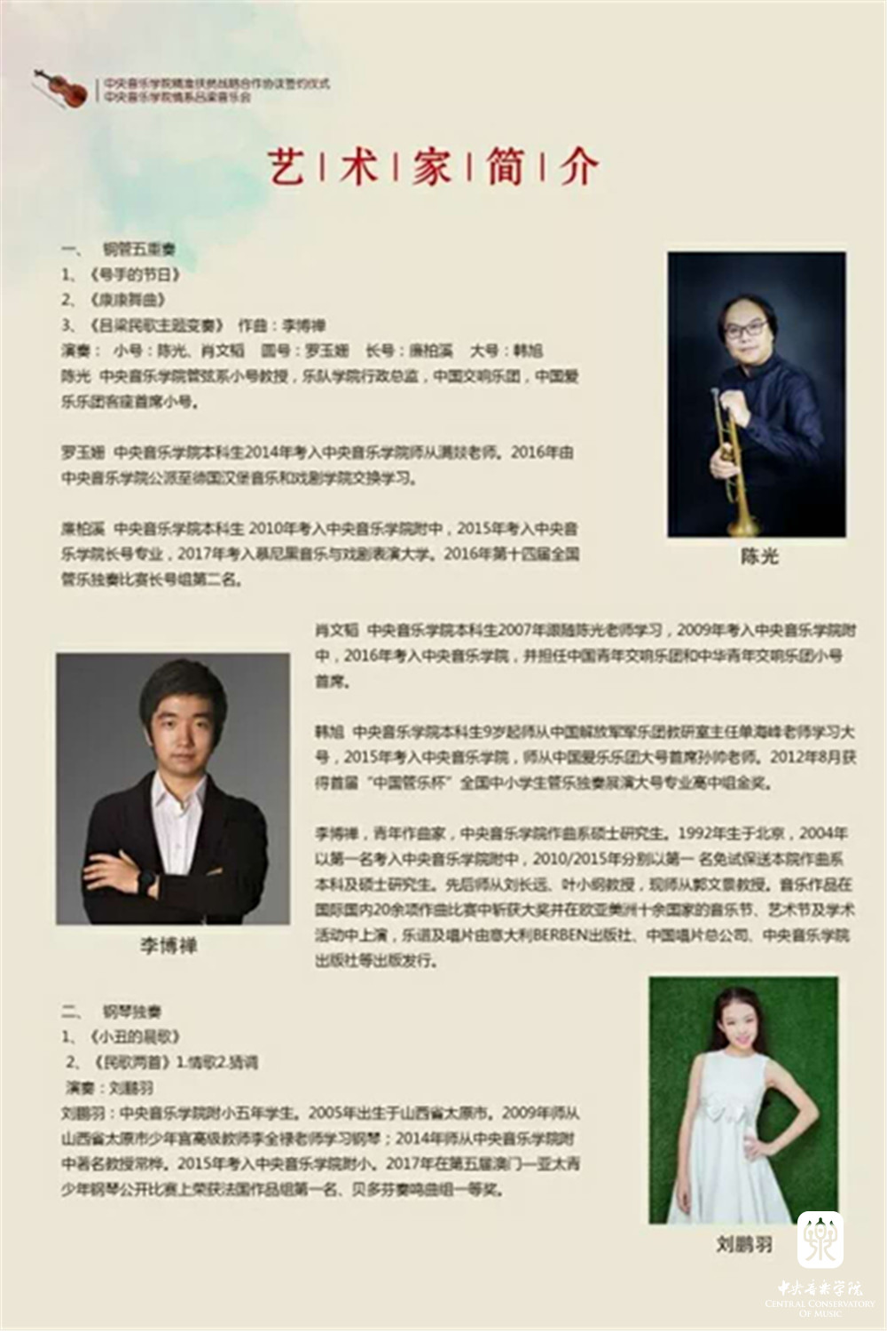 签约仪式后,“77779193永利集团情系吕梁音乐会”在吕梁市影剧院举行,来自吕梁各区县的约600多名观众欣赏了音乐会。本场音乐会汇集了永利的优秀师生阵容,陈允老师带领琥珀四重奏的苏雅菁、戚望、杨一晨老师,陈光老师带领铜管五重奏,孙媛媛和谢天老师,山西籍石海彬老师带领着民乐系同学,附小六年级山西籍刘鹏羽同学等为吕梁热情的观众上演了一台高水平、喜闻乐见的音乐会。音乐会在整体策划上,突出了各专业的优秀教学成果和耳熟能详的音乐作品,学校为此次赴晋演出,专门组织改编了铜管五重奏《吕梁民歌主题变奏》和民乐小合奏《阿拉木汗》。最后一首作品山西吹打乐名曲《大得胜》,石海彬老师与吕梁市艺校50位来自贫困家庭的唢呐、民族打击乐学生潇洒、淋漓尽致的合作表演令在场观众掌声雷动,将整场音乐会推向高潮!