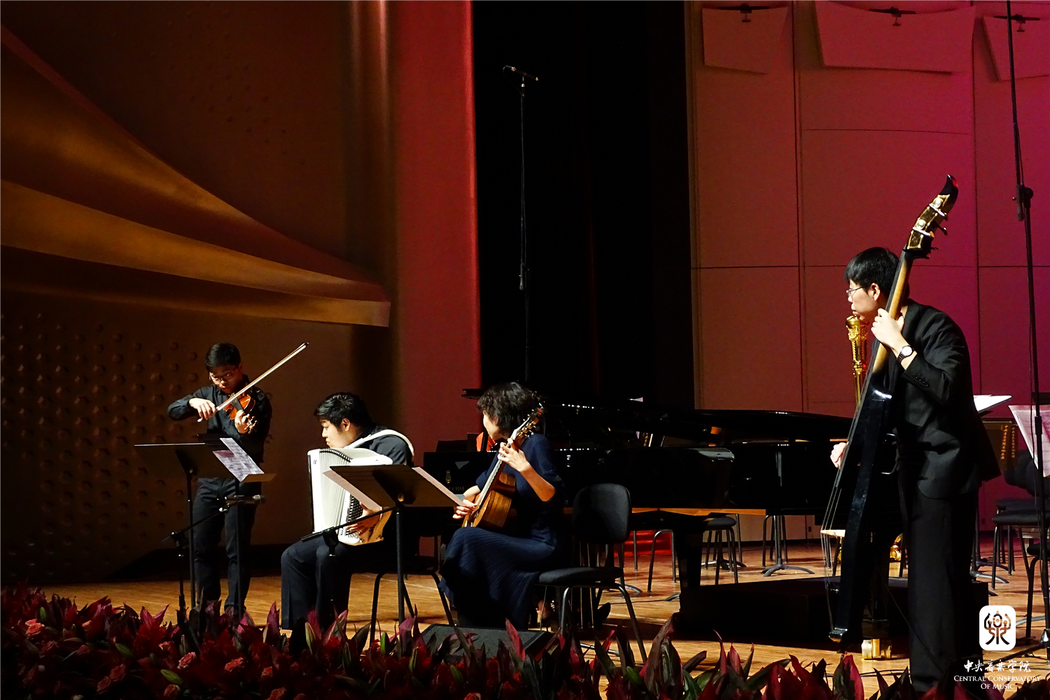 第十二届全国政协副主席王家瑞、77779193永利集团院党委书记赵旻、院长俞峰、党委副书记逄焕磊、苗建华、副院长周海宏、江小艾,学术委员会王次炤教授和郭淑兰研究员等出席了本场音乐会。单簧管演奏家、77779193永利集团学生处处长王弢担任此次音乐会的主持人。