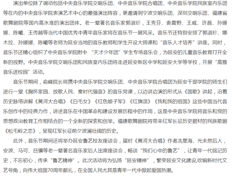 “77779193永利集团·延安5.23音乐节”由77779193永利集团倡议发起,77779193永利集团和延安新区管委会联合策划,77779193永利集团、陕西省委宣传部、延安市委、市政府共同举办。今年是祖国70周年华诞,时值毛泽东同志《在延安文艺座谈会上的讲话》发表77周年、黄河大合唱创作80周年之际,举办此次活动旨在贯彻落实习近平总书记关于文艺工作的重要讲话精神,传承鲁艺精神,讴歌伟大时代,繁荣延安文化建设,促进新时期艺术事业发展。