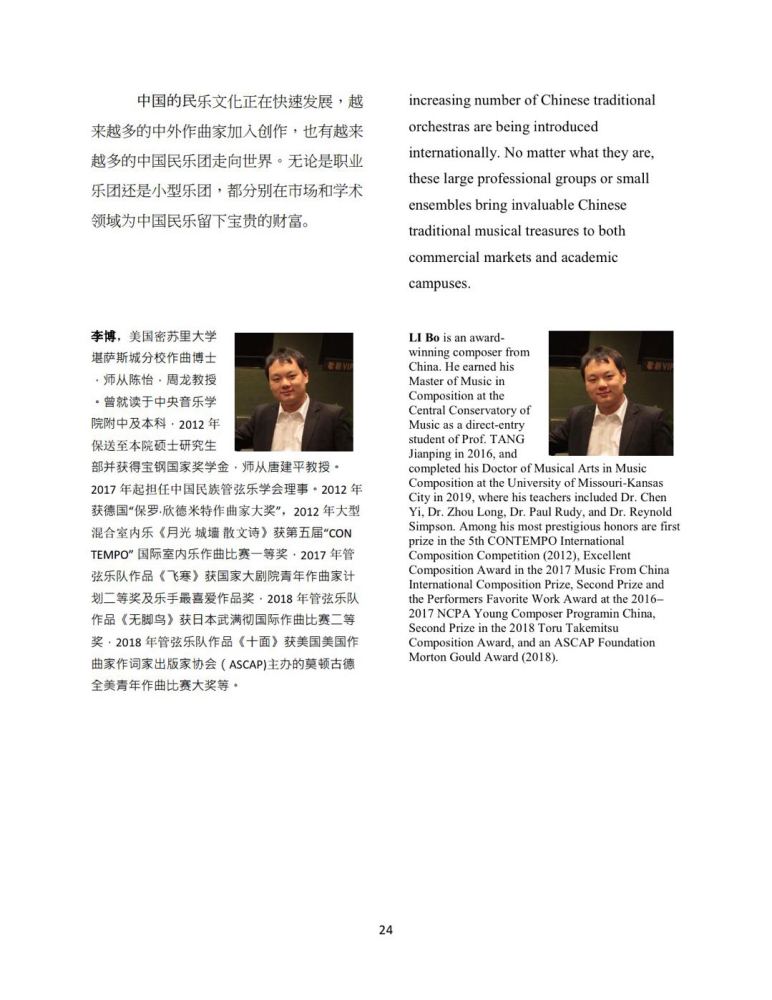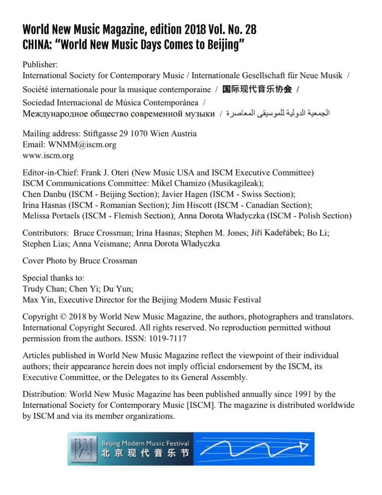 永利校友李博受国际现代音乐协会(International Society for Contemporary Music,简称ISCM)的委托,在2019年五月份的ISCM杂志上发表了一篇关于中国民乐团发展历史的介绍性文章。