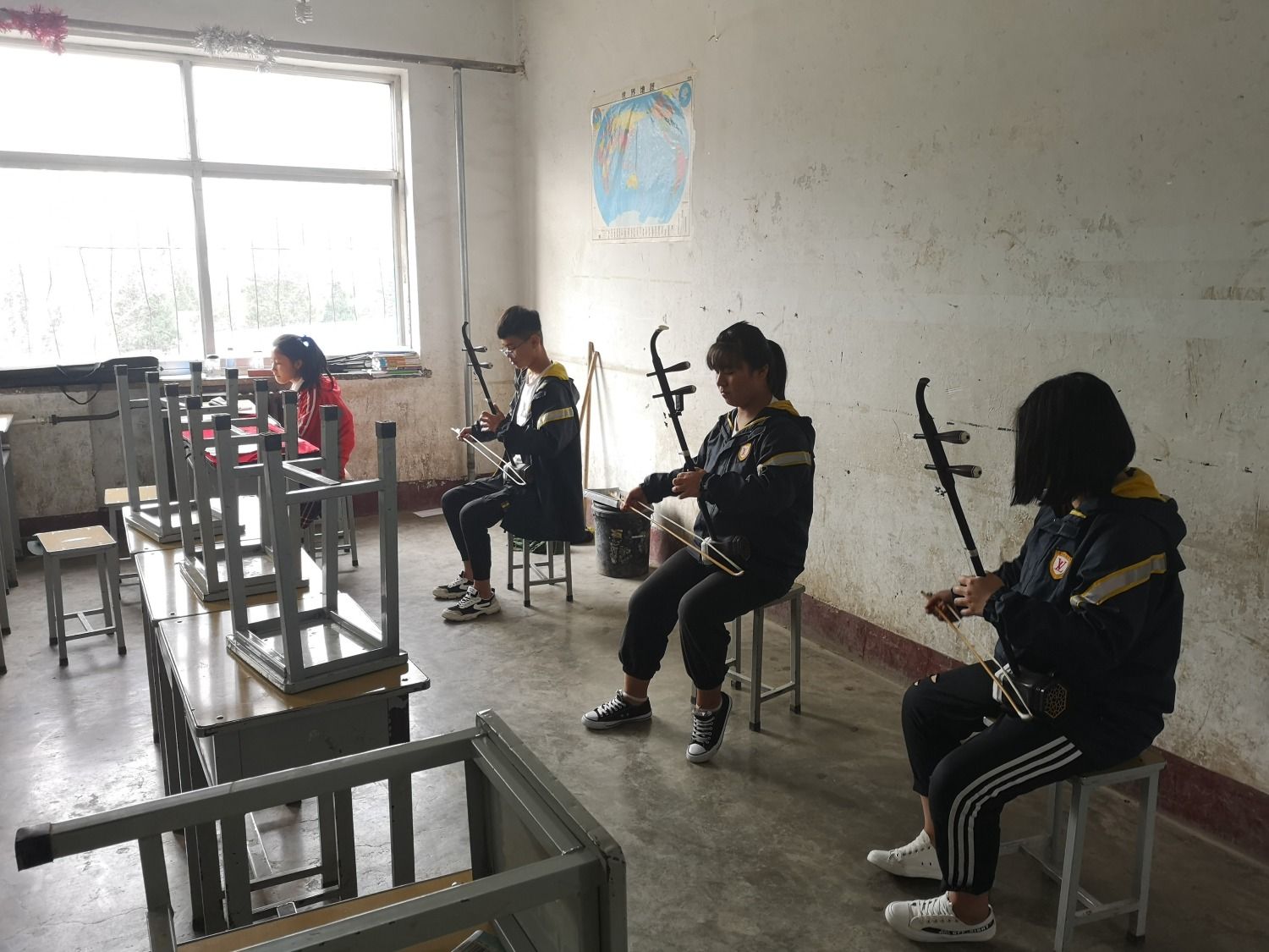采风团还深入走访吕梁艺校、艺校分校,扎进一线深入了解老师、学生们的上课情况、生活环境。简陋的教室和宿舍丝毫没有影响学生坚定而渴望的学习热情,在没有大型排练教室的条件下,为了学好唢呐、舞蹈等专业,无论天气冷暖,吕梁艺校的学生们只能在室外简陋的操场上练习,尤其是唢呐专业,为了掌握好的吹奏姿势,老师学生们经常一站就是好几个小时,学生们的学习劲头与吃苦上进的精神面貌深深地震撼着采风团每一位老师。当晚,采风团观看了吕梁艺校学生的汇报演出,平均年龄在9至12岁的学生演员为在场观众上演了一场精彩而动人的演出,他们把晋剧、吹打乐等极富当地音乐特色的作品精彩淋漓地展现给观众,让我们感到很多民间宝贵艺术资源在他们的传帮带下,继续努力地保留与传承。