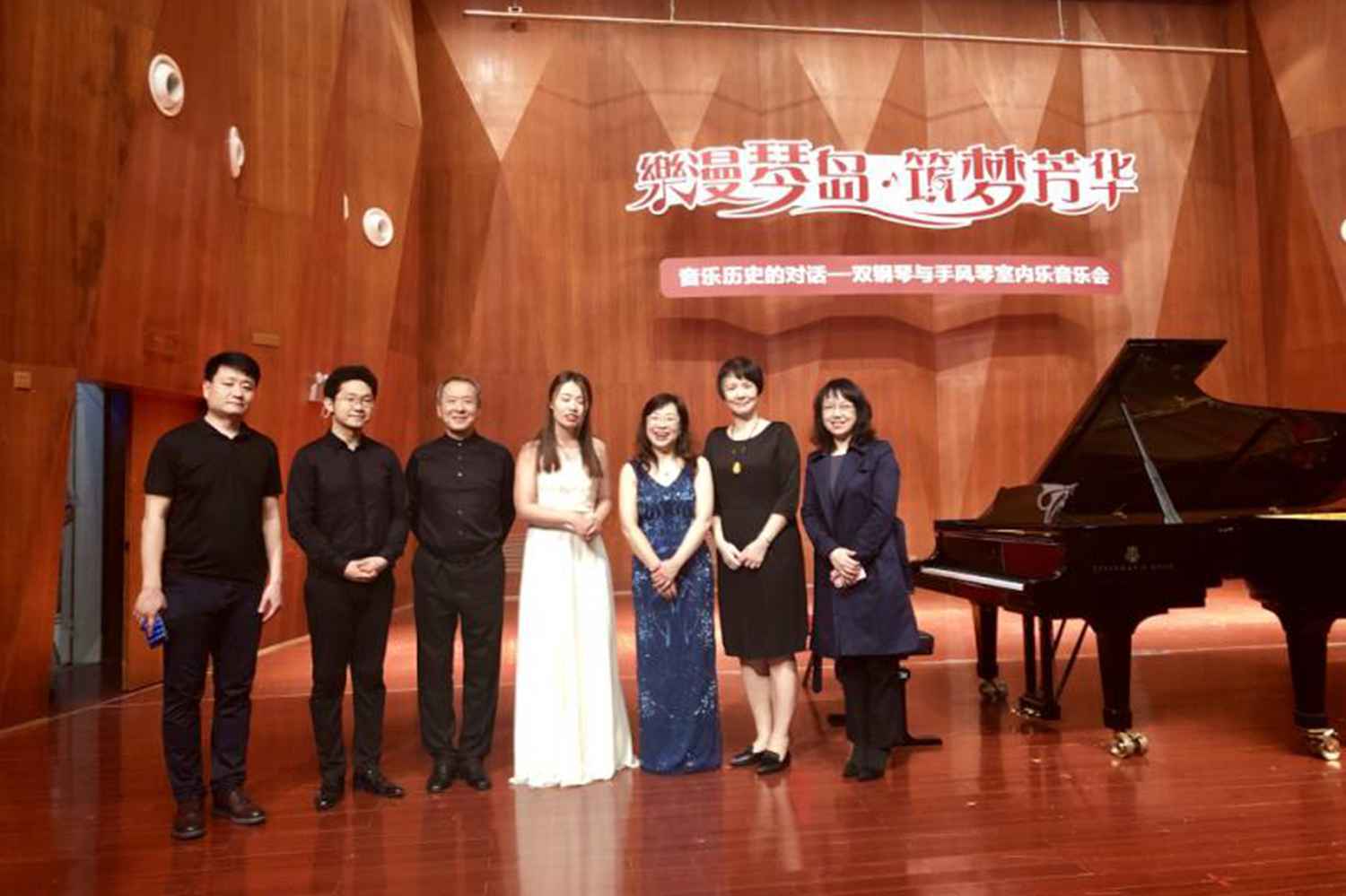 左起鼓浪屿钢琴学校钢琴学科主任汪洋老师、永利许笑男教师、张志玮副教授、许歌卉教师、陈曼春教授、