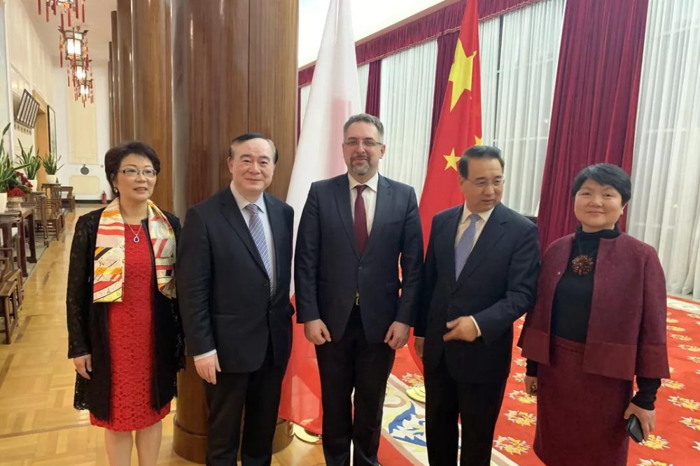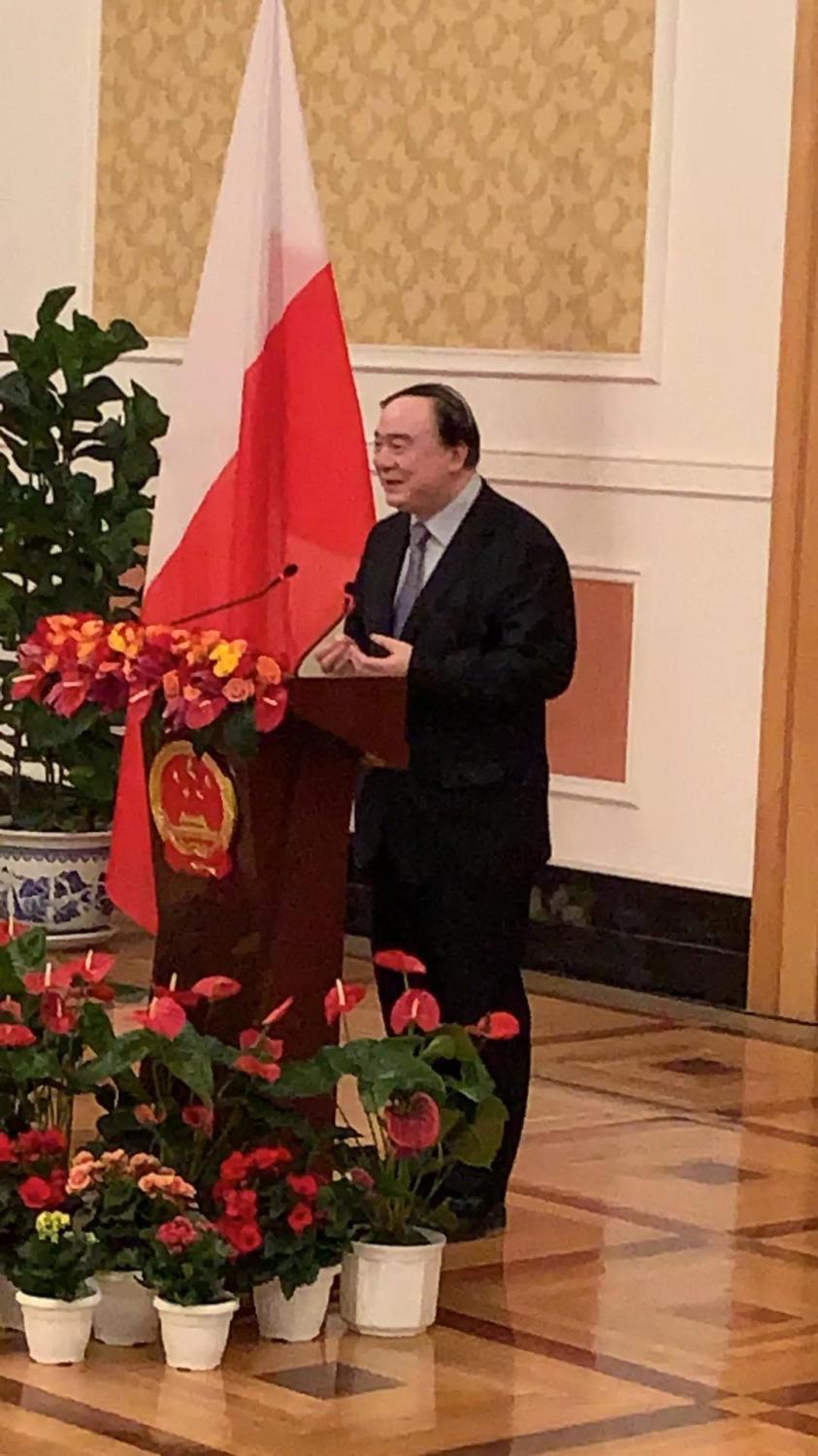 2019年4月6日,驻波兰大使刘光源和夫人彭玉英在使馆为宁波交响乐团波兰巡演举行招待会