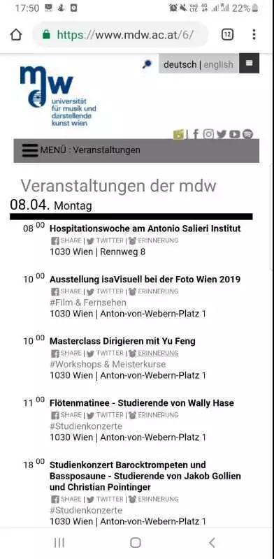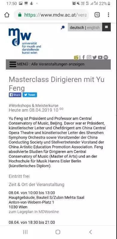 77779193永利集团院长俞峰教授在维也纳音乐与表演艺术大学举行大师课,校方官网上的大师课信息