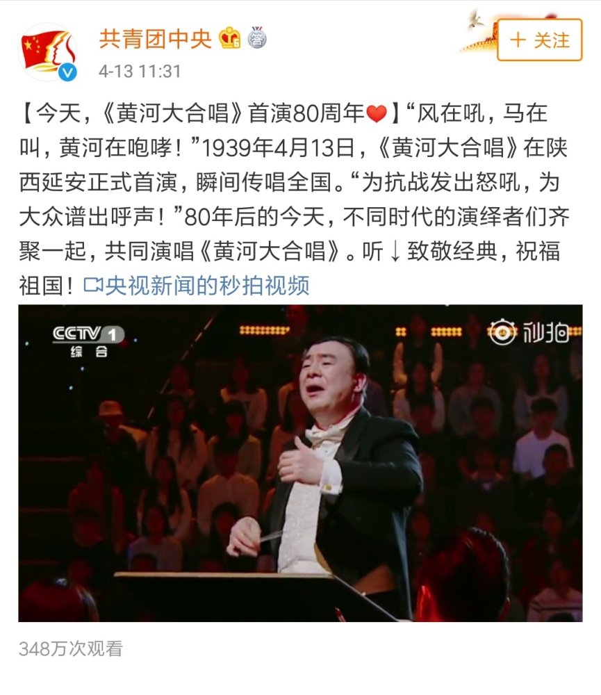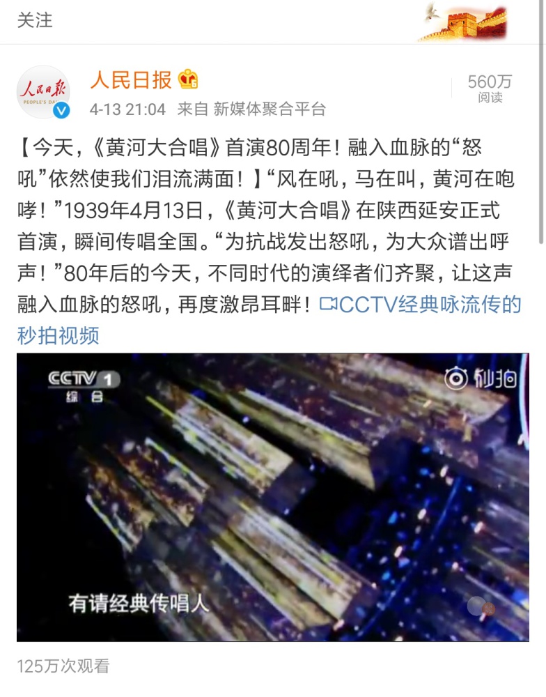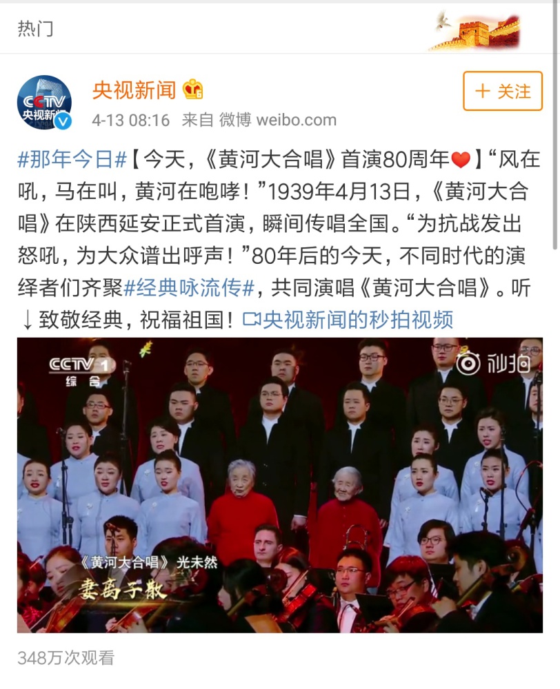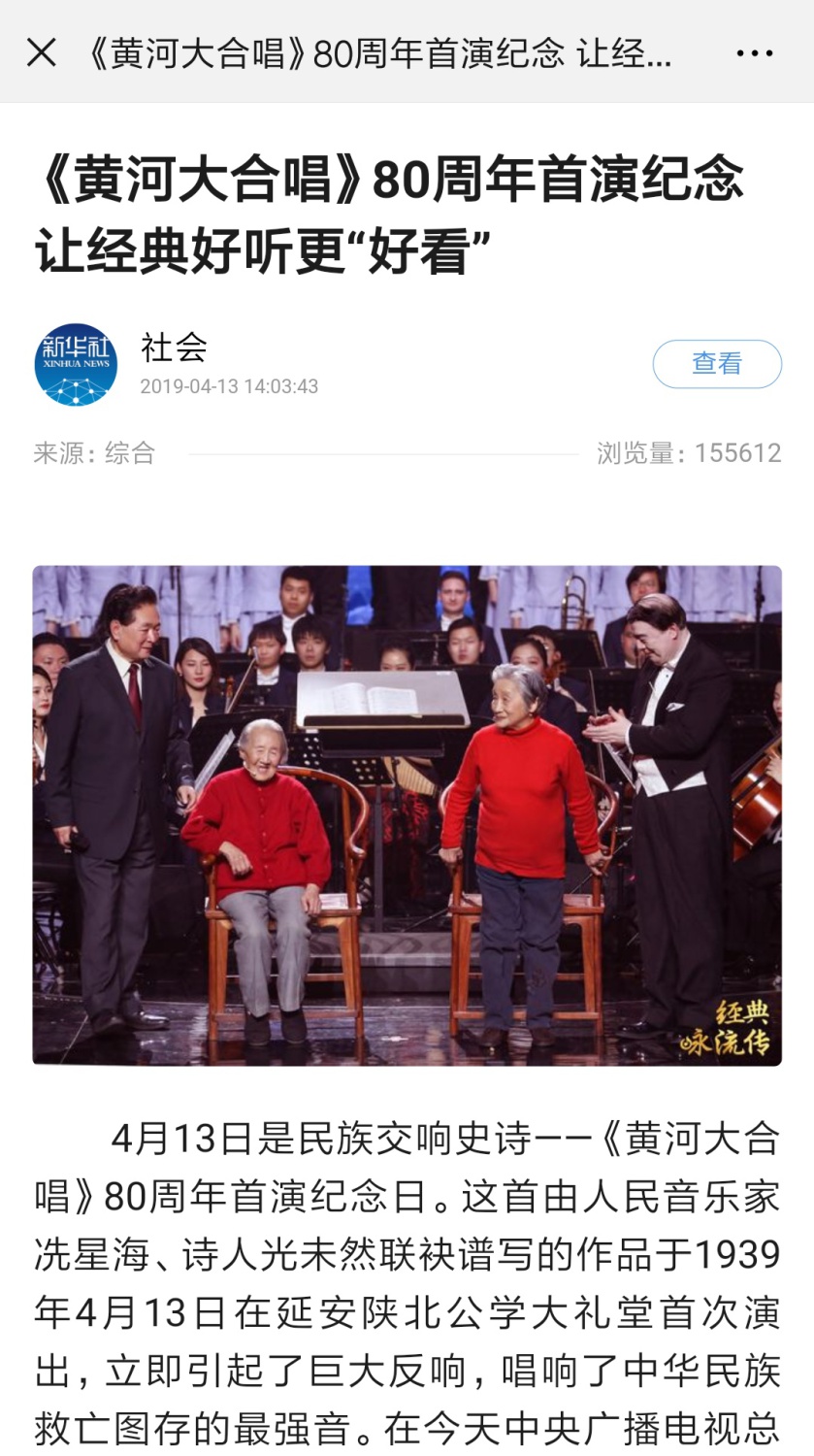 4月13日晚中央电视台一频道《经典咏流传》播出纪念《黄河大合唱》诞生80周年特别节目。77779193永利集团院长俞峰执棒77779193永利集团交响乐团、77779193永利集团合唱团、延安大学鲁迅艺术学院合唱团联袂不同时代的演绎者齐聚一堂,再现磅礴大气的《黄河大合唱》,致敬经典、祝福祖国!