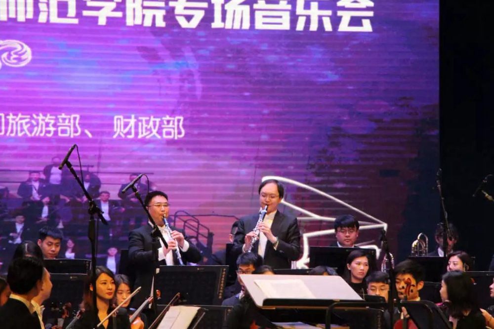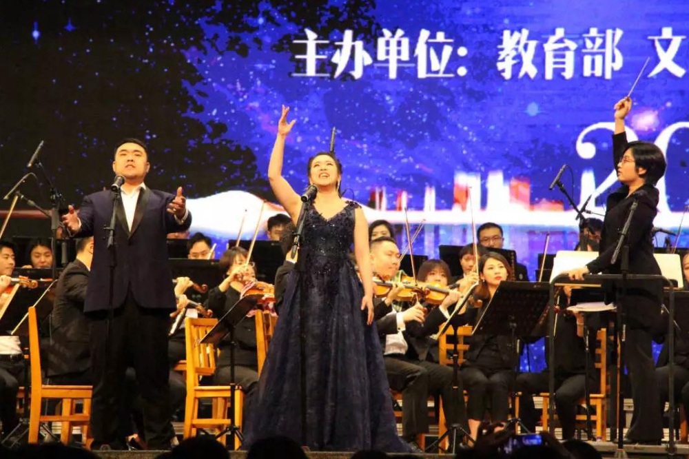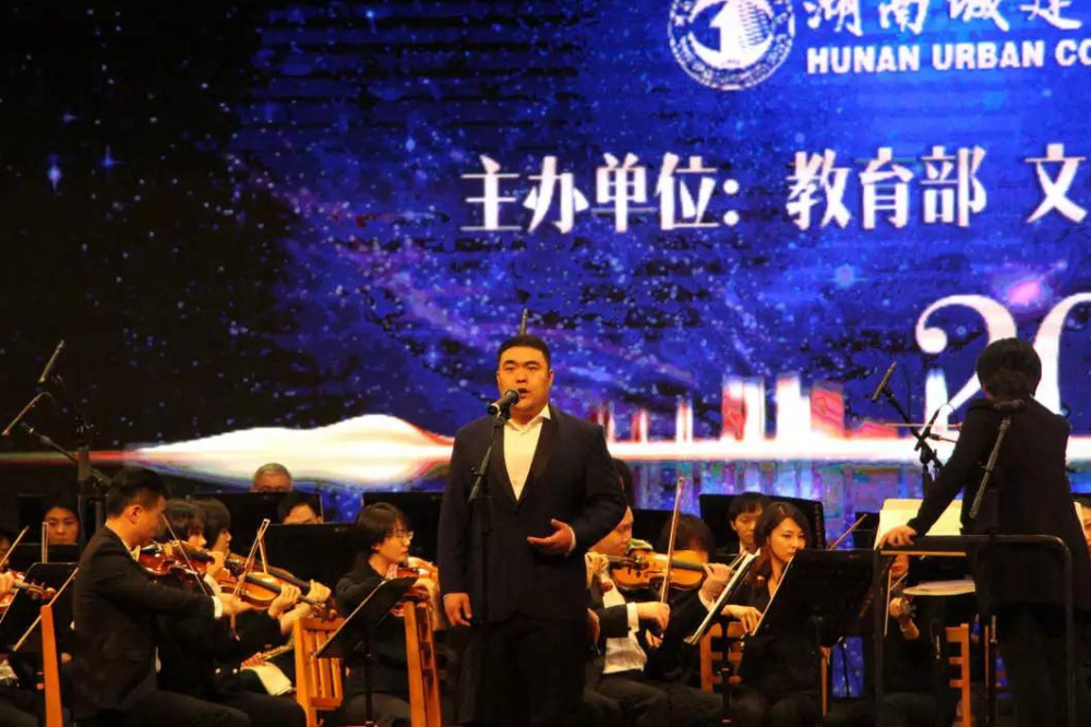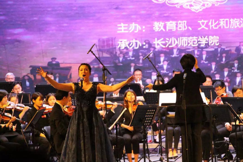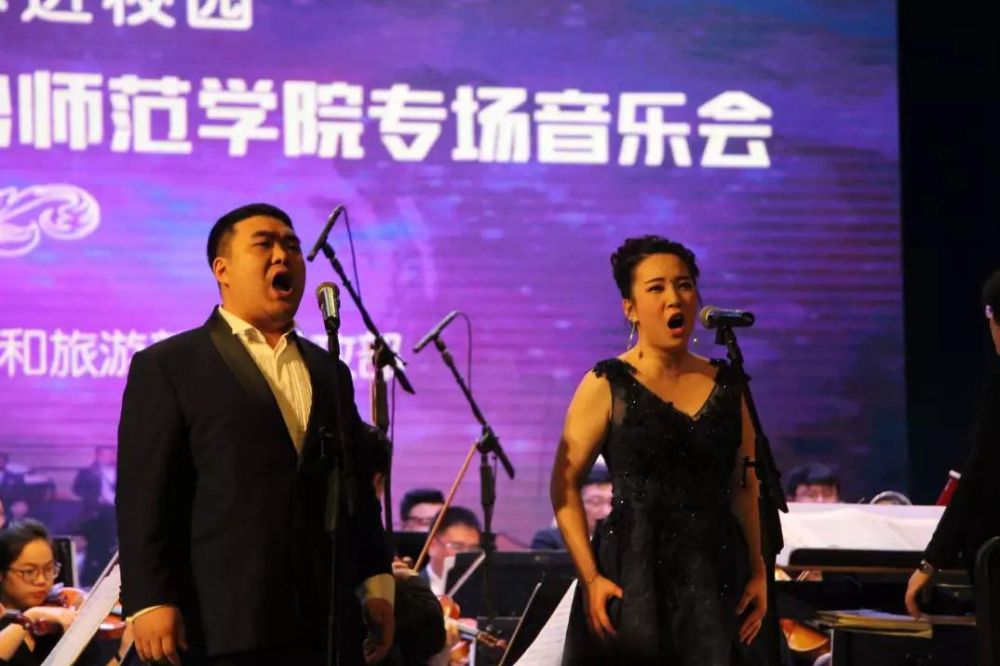 长沙师范学院声乐教研室主任谢婷婷和教研室的钟涵骏老师与77779193永利集团交响乐团合作演唱《我爱你中国》、《莫斯科郊外的晚上》