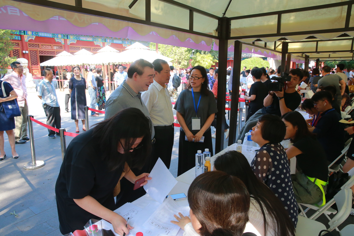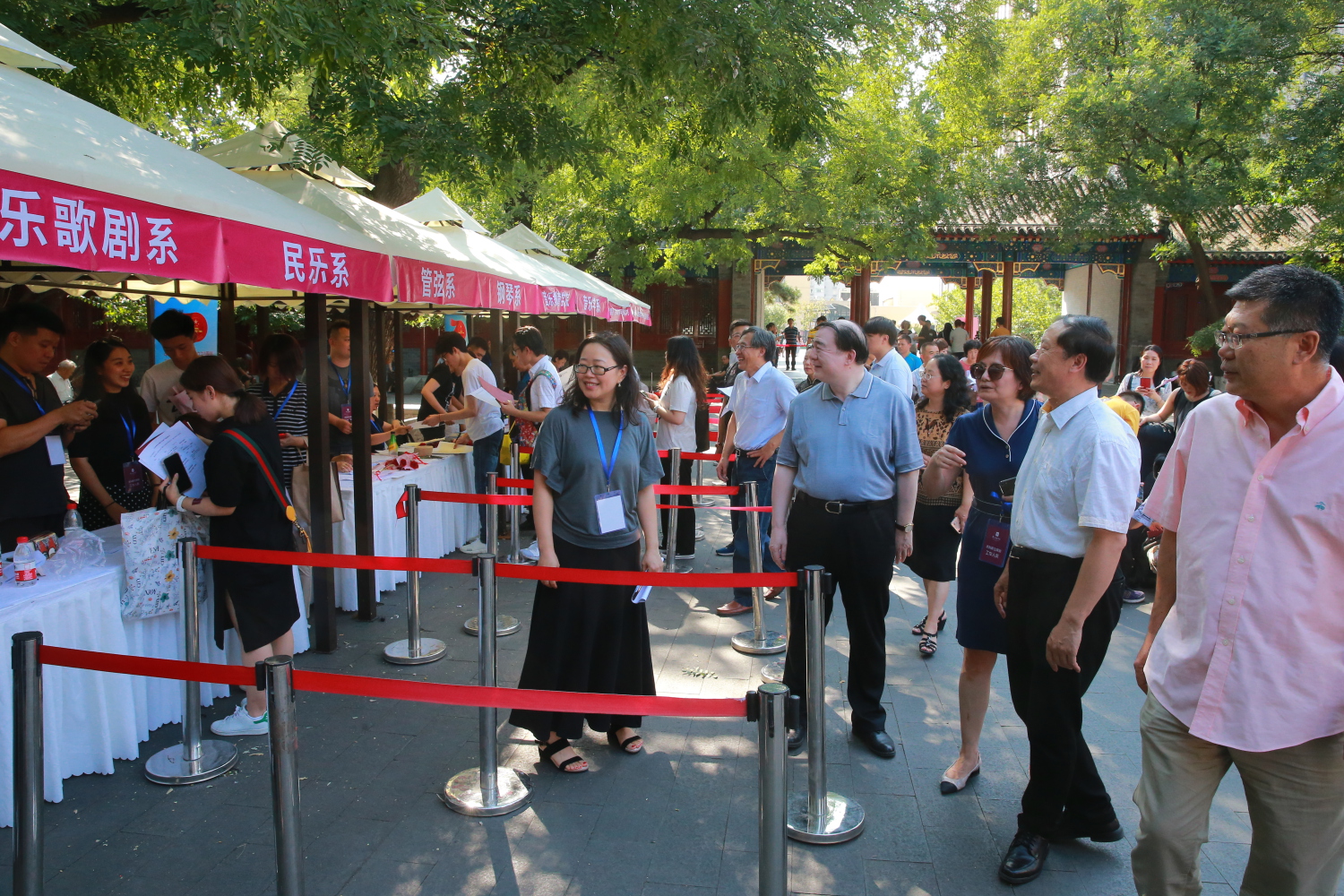 迎新工作由教务处负责组织协调,联合学生工作部、各教学院系、校园管理处、保卫部、网络信息中心、计财处等部门,经过周密的前期准备,报到注册工作于下午2时正式展开。学校党委书记赵旻、院长俞峰、副院长肖学俊、党委副书记苗建华、于红梅副院长、党委副书记刘春梅等院领导在教务处、学生工作部、党委办公室、宣传部、院长办公室等负责人的陪同下来到王府音乐厅报到现场,看望新同学、家长以及正在紧张接待新生报到的学校各部门教职员工及志愿者。由于前期的精心安排,整个报到流程完善严谨,获得新生及家长的认可。