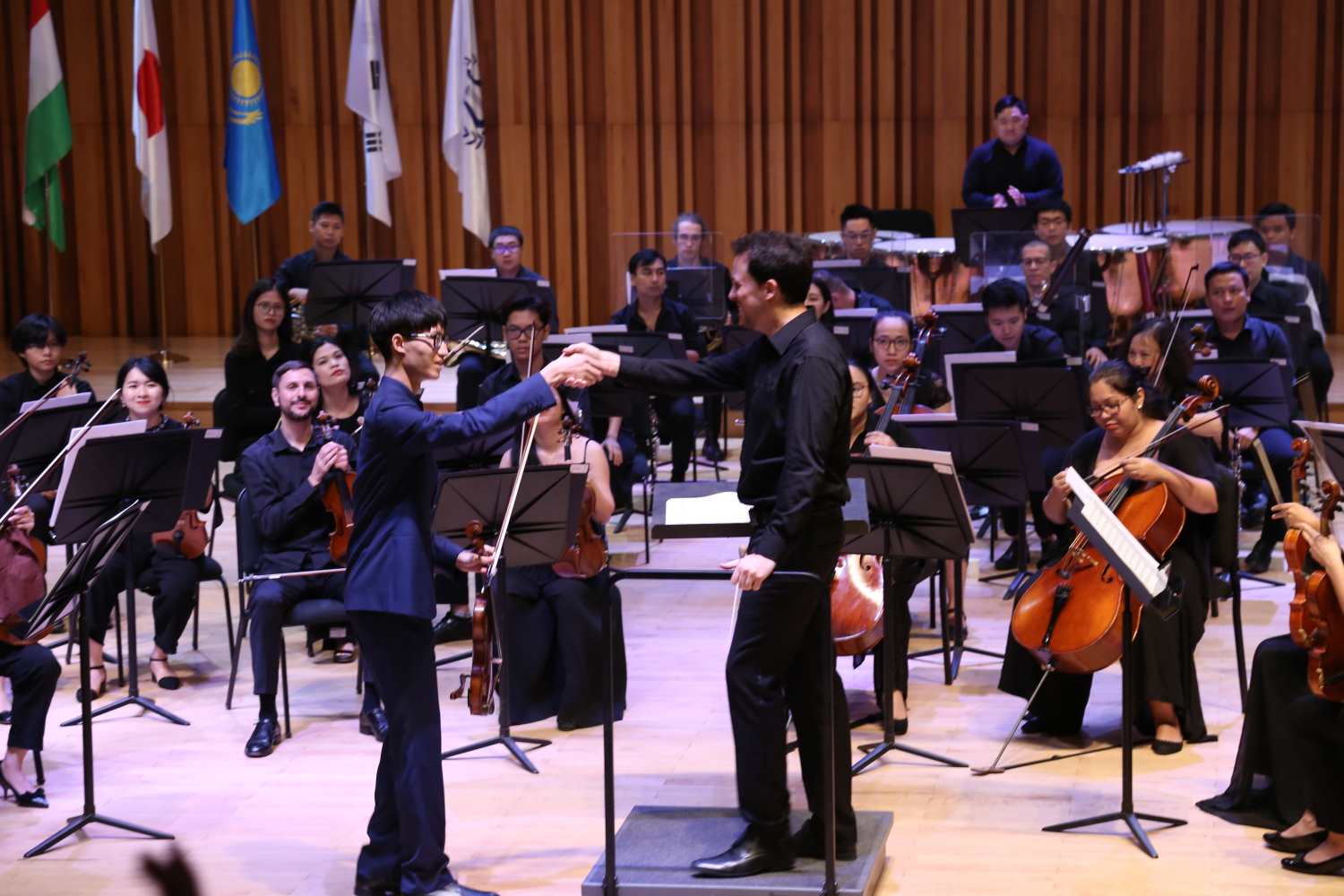经过7天的激烈角逐,18岁的江枕毅同学在抽签第一号的情况下,发挥出色,成为唯一一名20岁以下的决赛选手。决赛中,他与越南SUN乐团合作演奏的柴科夫斯基协奏曲,获得评委们的一致认同!最终取得金奖(最高奖为特等奖),并获得评委会颁发的最年轻优秀选手奖!