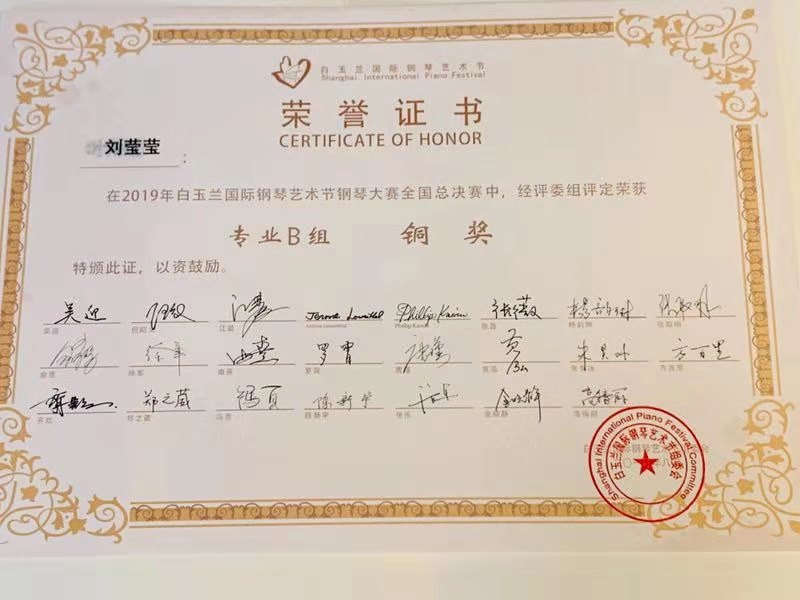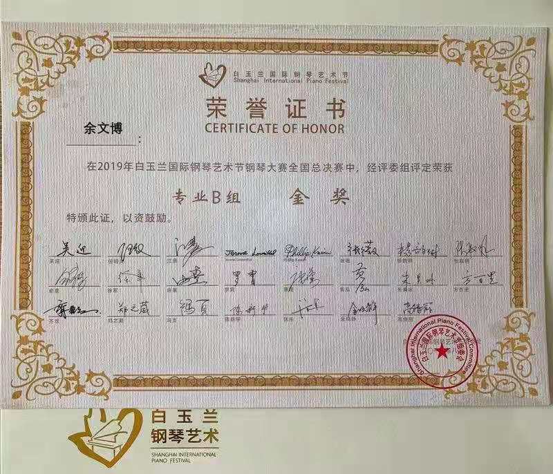 8月2日,面对不同场地,不同的评委及选手,永利钢琴系本科三年级学生余文博(指导教师:由熹教授)在距离上一场比赛结束仅时隔二天的状态下再次斩获“2019年白玉兰国际钢琴艺术节全国总决赛”专业青年组金奖。永利大四学生刘莹莹(指导教师:由熹教授)以出色的演奏赢得大赛公开青年组铜奖。