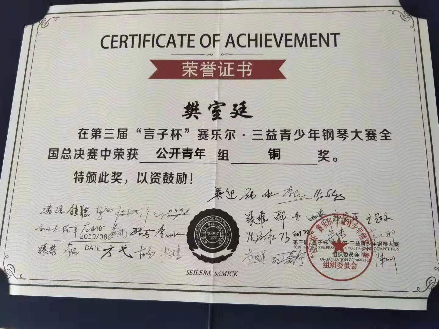 第三届“赛乐尔·三益青少年钢琴大赛是由上海市奉贤区文化和旅游局主办,由中国音协钢琴学会、德国音乐家钢琴协会、美国波士顿音乐学院、陕西省音乐家协会、广西音乐家协会、四川省音乐家协会、广东省音乐家协会、上海奉贤区经济委员会等单位支持举办的的重量级钢琴赛事,该比赛自2015年首届举办至今已逾三届,每两年举办一次。本届比赛初选逾十万人报名,经过八十多个分赛点考核,选拔国内优秀钢琴演奏人才汇集上海进行总决赛。大赛评委阵容强大,评委会会主席由中国音协钢琴学会会长、我院吴迎教授担任,艺术总监由中国音乐学院钢琴教研室主任韩冰担任。主席评委会成员有伊利亚·歇普斯(德国)、潘淳、邵丹、蔡韧、陈剑、陈声钢、方弋、冯键、郭爱萍、胡杨、金泰振(韩国)、孔嘉宁、李敏玲(韩国)、李晓君、李壮壮,苏斌、许兵、由熹、张芳、张维等多位著名钢琴教育家组成。