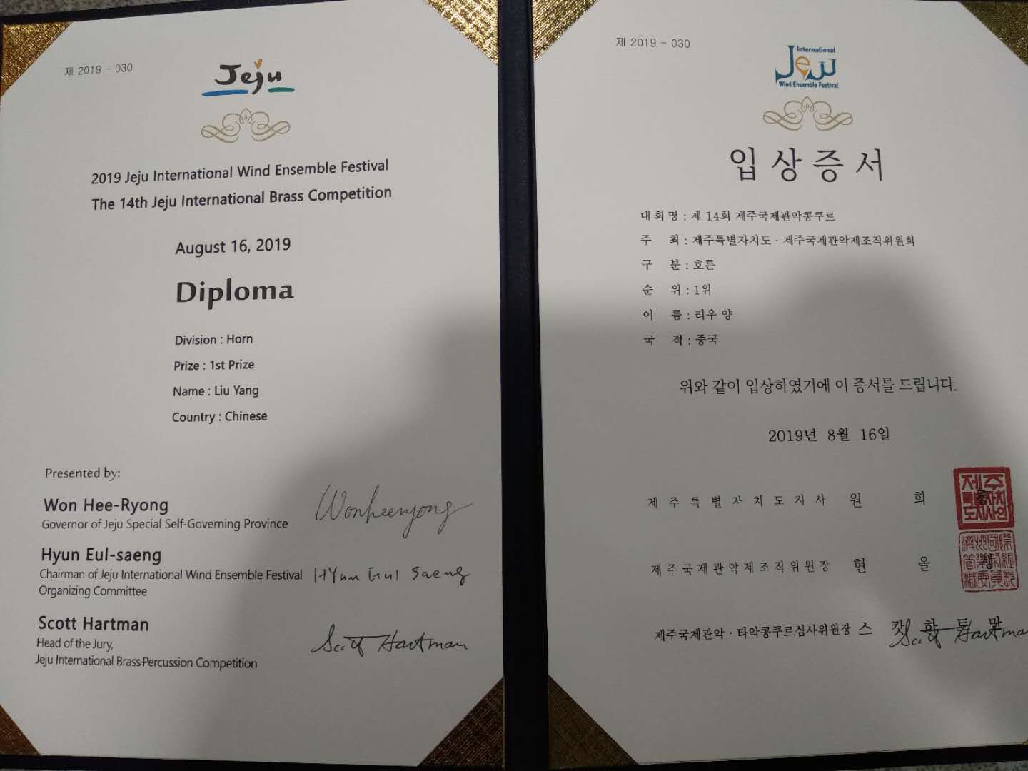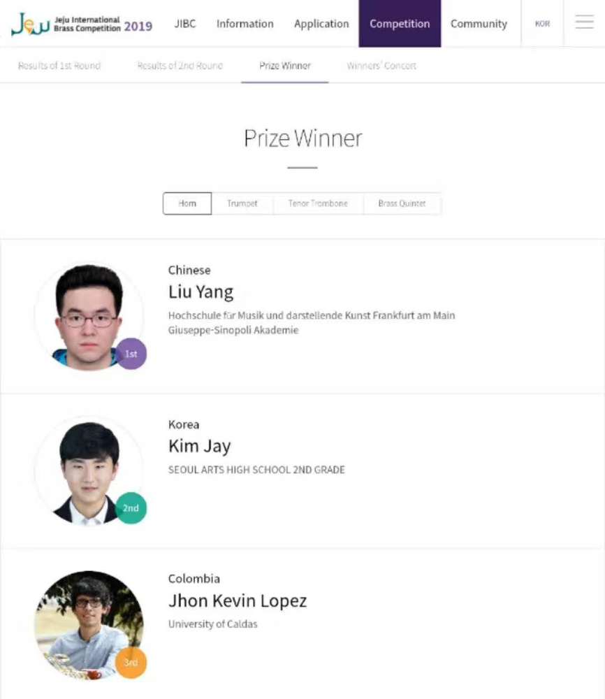 在刚刚结束的第十四届韩国济州国际铜管比赛中,永利附中校友刘洋获得了圆号专业第一名的好成绩(附中期间指导教师:温泉教授)。