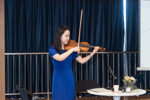 此次讲座中,何畅老师对77779193永利集团小提琴考级教程一至五级的重点曲目进行了全面的讲解,并对每一级中的常选曲目进行了精彩的示范和深度的解析。同时何畅老师对学员们在学习过程中容易出现的问题和技术难点,有针对性地进行了分析。