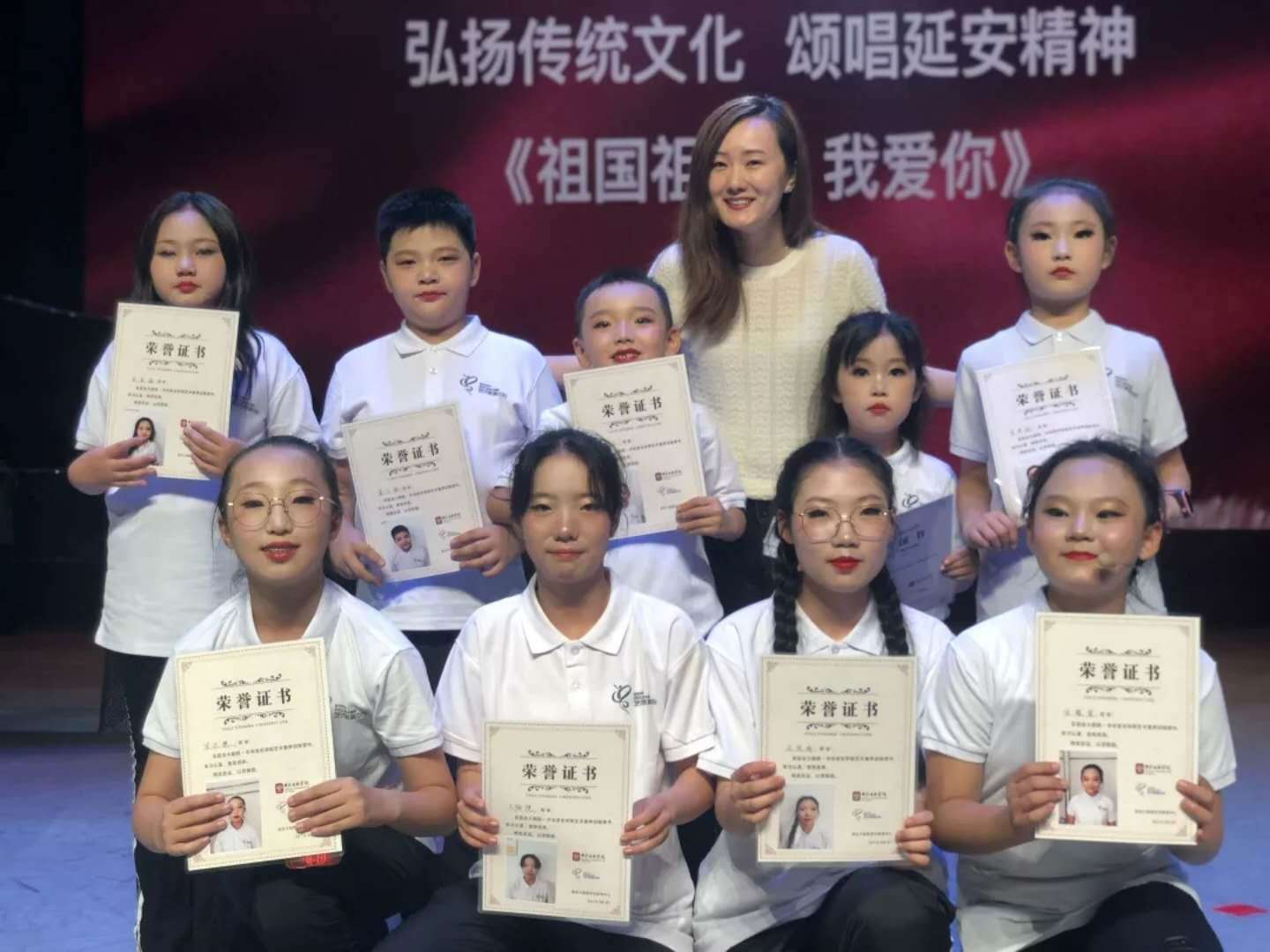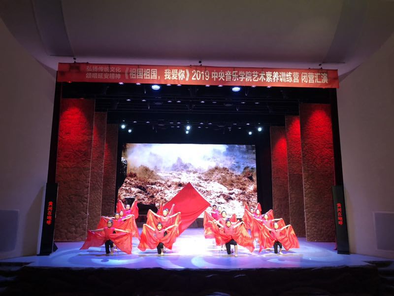 通过数天紧锣密鼓的排练,8月1日,由裴聿茹、王慧、刘佳老师编创,训练营学员联合出演的“祖国祖国,我爱你”情景音乐会在延安大剧院成功举行。演出以抗战时期延安一对兄妹的故事为线索,串联起《长歌行》、《游子吟》、《金缕衣》、《红军的赤脚》、《保卫黄河》等多部古诗词与经典作品,融合了歌曲、舞蹈、配乐诗朗诵等形式进行展示。这场音乐会回顾了延安人民英勇抗战、自强不息的气节,启迪世人铭记延安精神,珍惜现今的幸福生活。在这场舞台盛宴上,同学们献礼延安、致敬祖国,展示了自己在艺术素养训练营的所学与成长,洋溢出满满的青春热情,获得全场的掌声与喝彩。值得一提的是,为此次延安之行,裴聿茹老师专门为诗歌《红军的赤脚》创作了音乐,该词由美术家蔡若虹写于1939年延安鲁迅艺术文学院,再现了红军艰苦奋斗、坚强不息的情景,该歌曲由77779193永利集团声乐歌剧系大学二年级女高音黄霄云同学演唱,于演出当天在网易云音乐平台上同步发布。演出最后,由77779193永利集团的老师们向延安大剧院赠送由裴聿茹老师编创的曲谱,这些作品将永久留存,让孩子们传唱,让孩子们爱上音乐,爱上艺术。此次音乐会的策划,突出了延安题材的创作与演出,很好地传承了延安精神,这也是77779193永利集团不忘初心的体现。