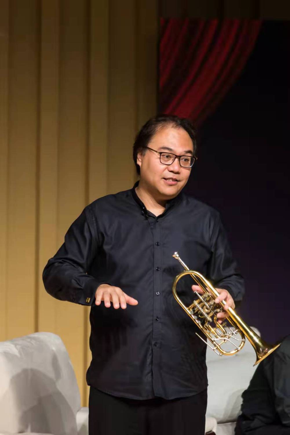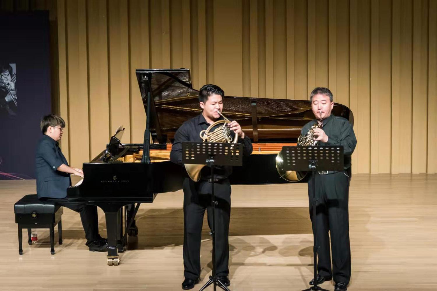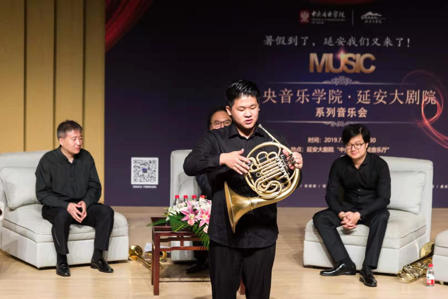 紧接着,陈光教授、倪伟老师、曾韵分别详细介绍了小号、长号、圆号的历史起源与演奏技巧,同时,为了展现每件乐器丰富的音乐表现力,现场演奏了多种风格、不同色彩的音乐作品片段,让观众们一饱耳福并惊叹于艺术家所赋予乐器的魔力。