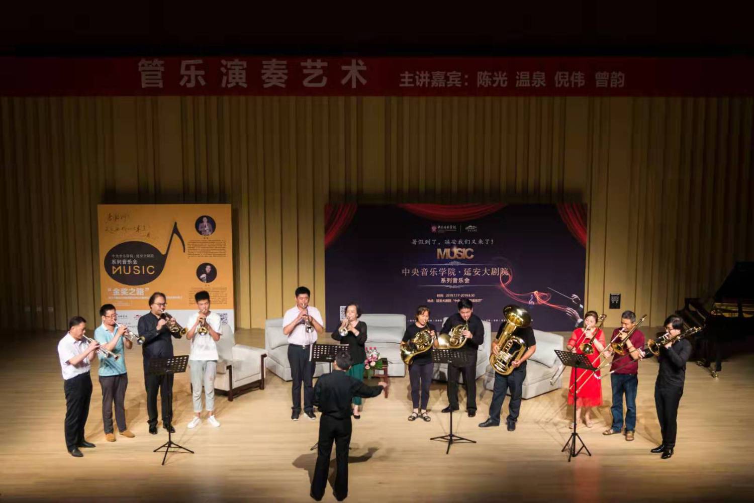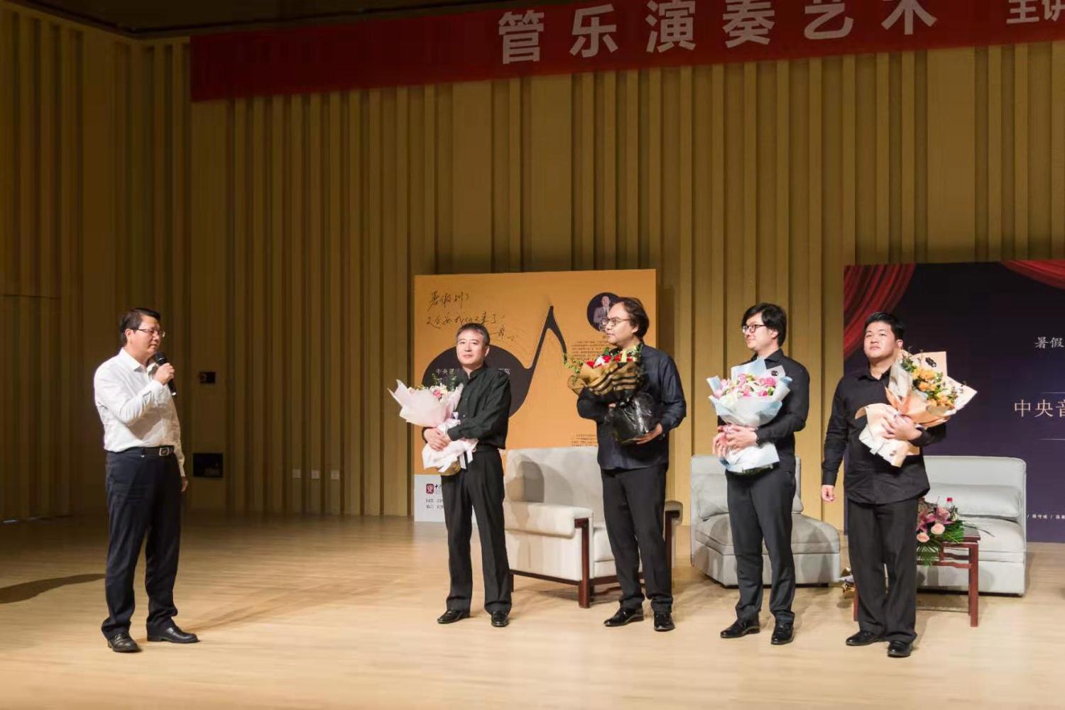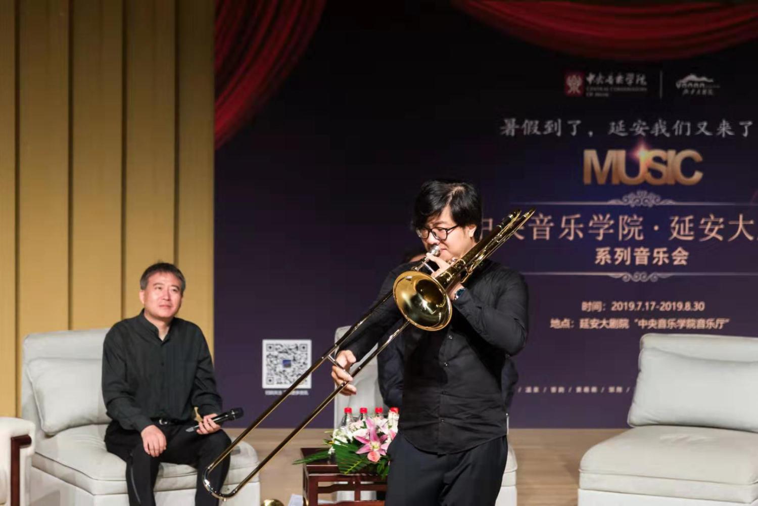8月6日上午延安大剧院,一场主题为“管乐演奏的艺术”的讲座由陈光教授、温泉教授、倪伟老师、曾韵集体开讲!延安市委宣传部部长柯昌万出席并与现场观众共同聆听讲座。时长近2小时的讲座节奏紧密、互动频繁,令大家获益匪浅。
