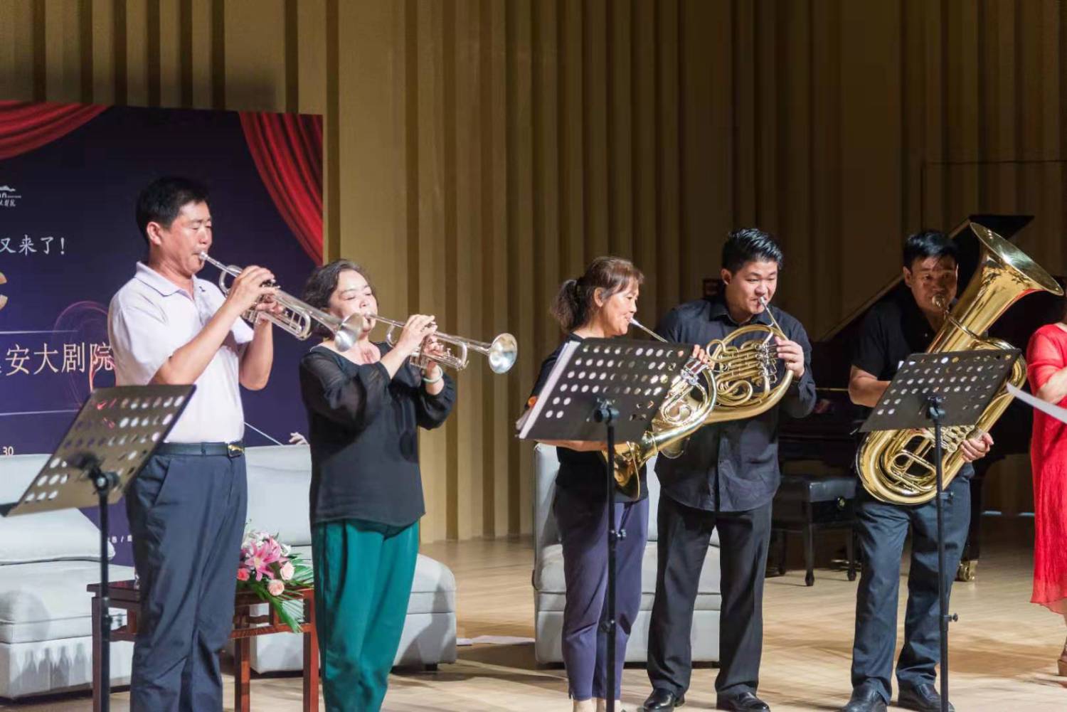 为了给延安人民带来全面、丰富的管乐体验,四位艺术家在讲座前不断碰撞、交流,力求将讲座每个环节、每次互动、每个渴求都能百分百地分享、输送给大家。在讲座的最后提问环节,观众们踊跃积极的发问与思考,四位艺术家深入浅出、因材施教的引导与答疑解惑,拉近了管乐艺术与大家的距离,坚定了追求管乐学习的信念!