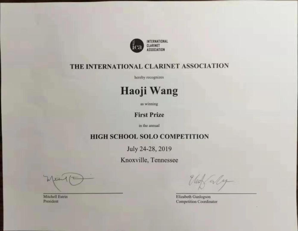 美国时间2019年7月26日下午,由国际单簧管协会举办的世界青少年单簧管比赛在美国田纳西大学音乐学院落下帷幕,来自77779193永利集团附中的王昊基同学作为全世界六名进入比赛决赛的选手之一,技压群雄、勇得桂冠获得第一名!