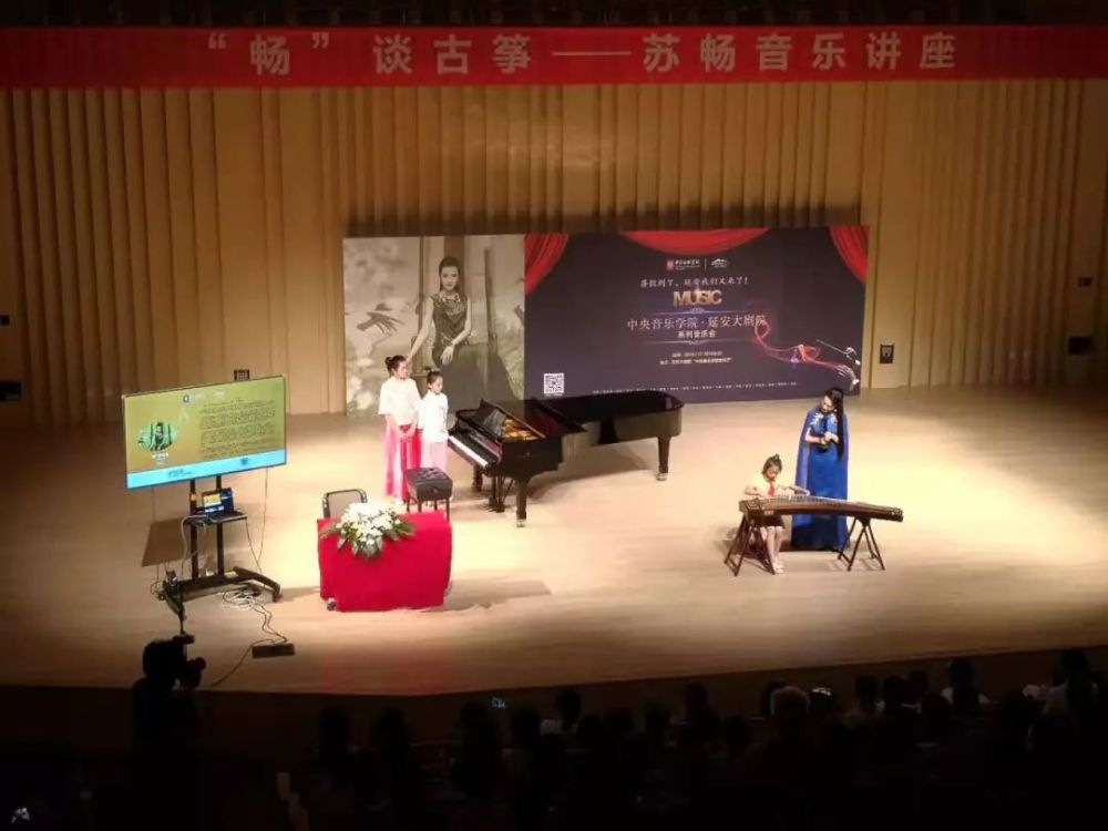2019年7月23日晚,离“‘畅’谈古筝——苏畅古筝讲座音乐会”预告开场的时间还有半小时,延安大剧院77779193永利集团音乐厅里早已坐满了慕名而来的观众。“77779193永利集团·延安5.23音乐节”的激情还未褪去,“暑假到了 延安我们又来了”系列活动像是又在延安投下一枚重量级的音乐彩弹,再次在延安掀起了央音热潮。赵薇、苏畅、邹翔、陈光、何畅、曹晓青、郦嘉炯、谢天……这些以往只能在电视上看到的音乐家们,在这个暑假走进延安大剧院,或讲或演,与延安观众亲密交流,和延安人民一同渡过这个难忘的暑假。5.23整整两个月后的这个美丽的夜晚,现场的观众反复读着手中的节目单,观看着大屏幕中关于讲座嘉宾的预告,翘首期待他们在电视和新闻里关注已久的77779193永利集团优秀青年古筝教师、“新十大古筝演奏家”——苏畅老师的到来。