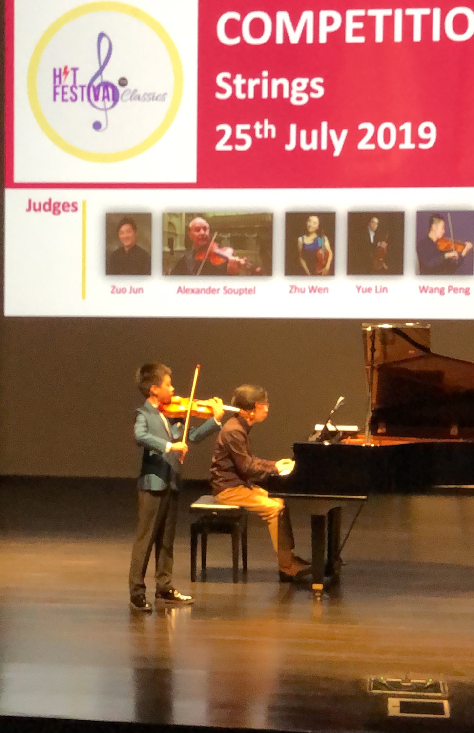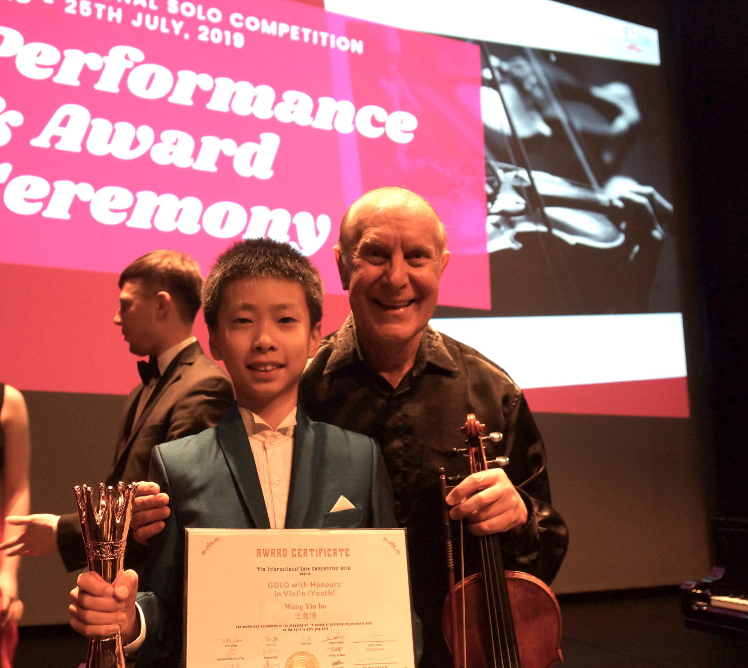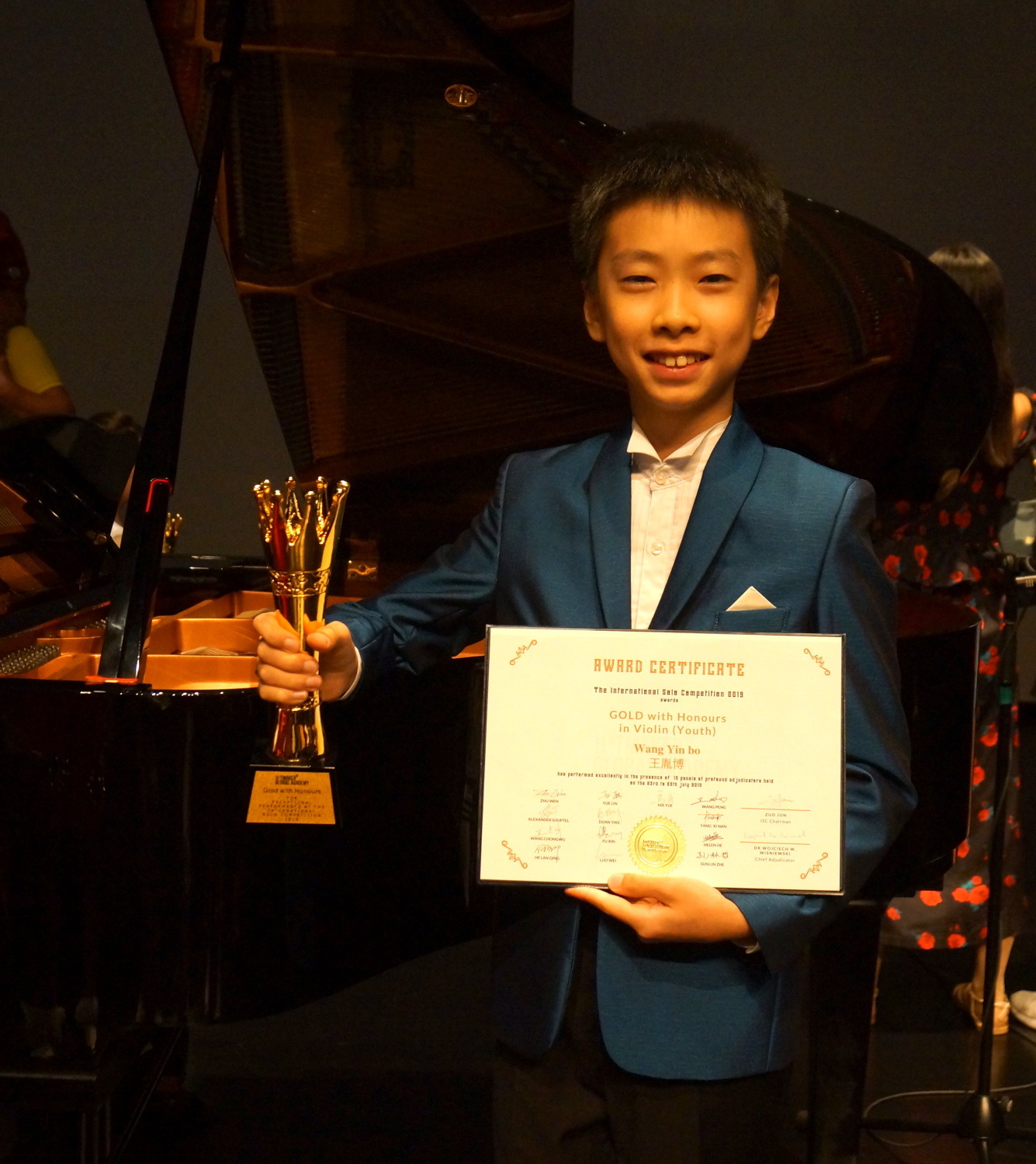 在刚刚结束的新加坡2019国际独奏比赛(Singapore International Solo Competition2019)中,77779193永利集团附中年仅12岁的小提琴专业学生王胤博从几十位选手中脱颖而出,以全场比赛最高分的绝对优势一举摘得特别金奖(Gold with Honours,注:此奖项设置为比赛最高奖项)。指导教师:赵薇教授,岳麟副教授。(特邀钢琴艺术指导:王春副教授)。