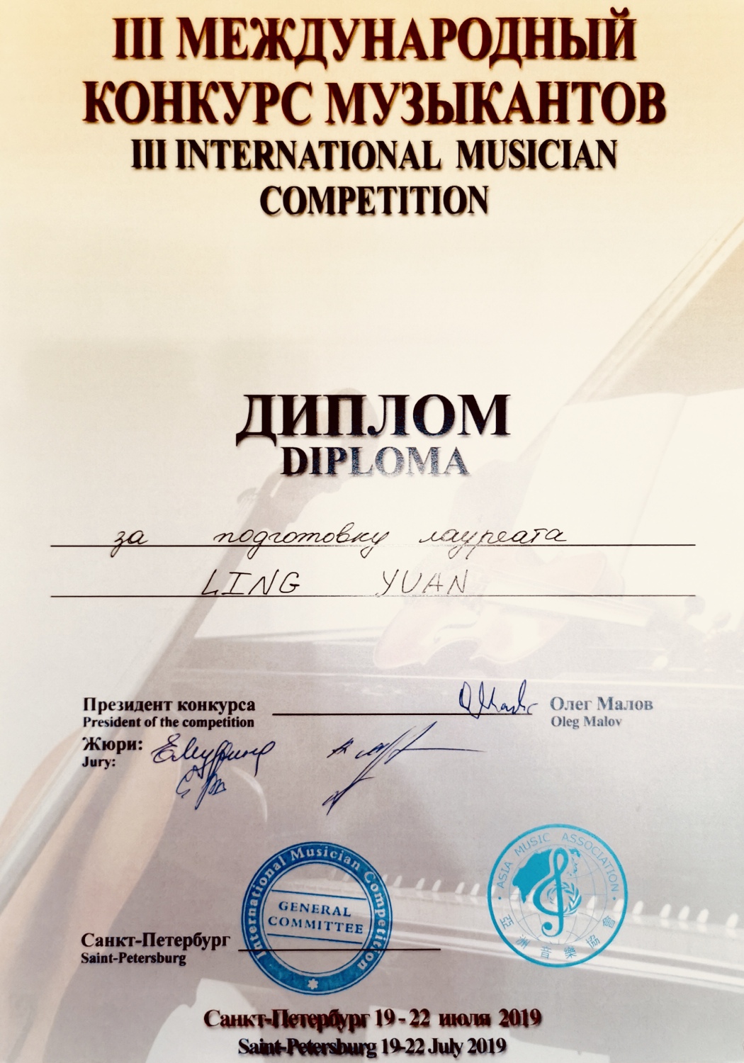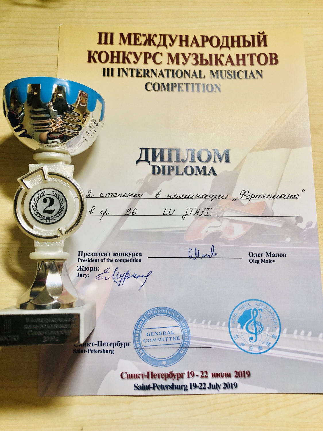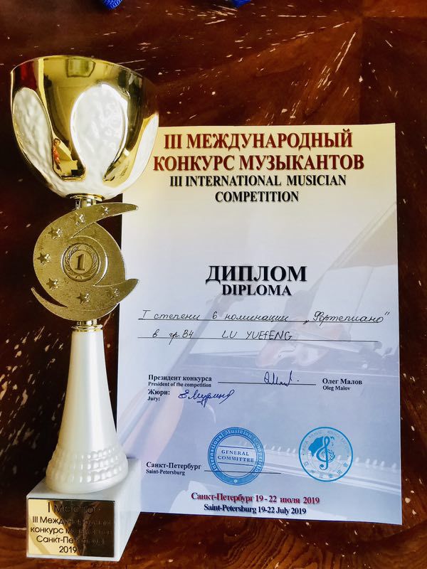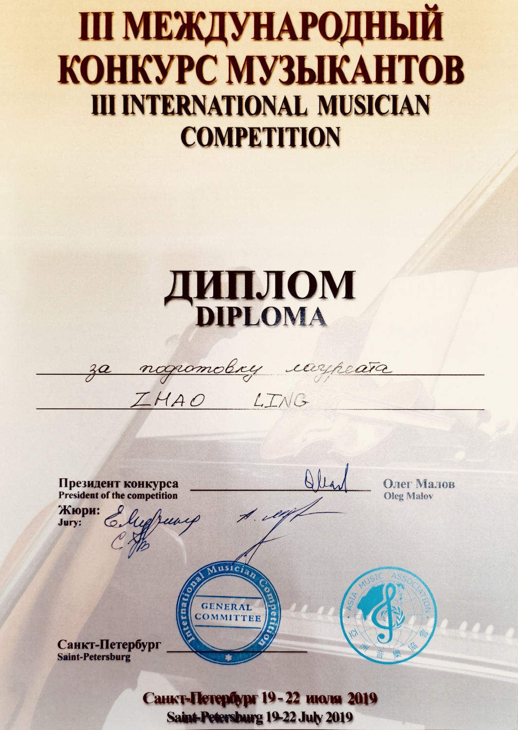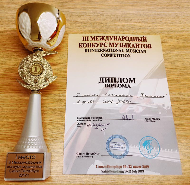 七月,在俄罗斯圣彼得堡举行的第三届圣彼得堡&国际音乐家大赛圆满落下帷幕,钢琴比赛最终共有中国、俄罗斯、哈萨克斯坦、白俄罗斯、亚美尼亚和波兰等国的选手进入决赛,经过激烈角逐,我院钢琴系三年级同学栾景旭摘得比赛青年组第一名(指导教师:赵聆教授),钢琴系一年级同学卢嘉仪获得青年组第二名(指导教师:赵聆教授)。我院附小四年级同学鲁岳峰获得少年组第一名(指导教师:凌远教授)。凌远及赵聆教授分别荣获比赛组委会授予的优秀指导教师奖。