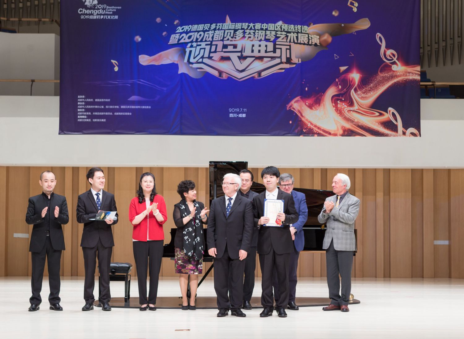 7月11日,在成都市中国-欧洲中心云端音乐厅刚刚落幕的2019成都贝多芬钢琴艺术展演暨2019德国波恩贝多芬国际钢琴大赛中国区预选赛上,永利钢琴系四年级学生牟吉喆(指导教师:韦丹文)获得青年组第一名,并获得参加2019年12月在德国波恩举行的贝多芬国际钢琴比赛资格,附中学生范真诚(指导教师:凌远)获得少年组第一名,徐嘉佑(指导教师:权洪波)获得儿童组第一名。
