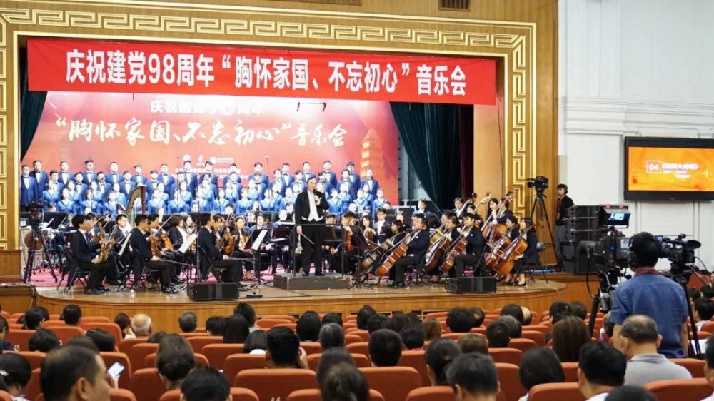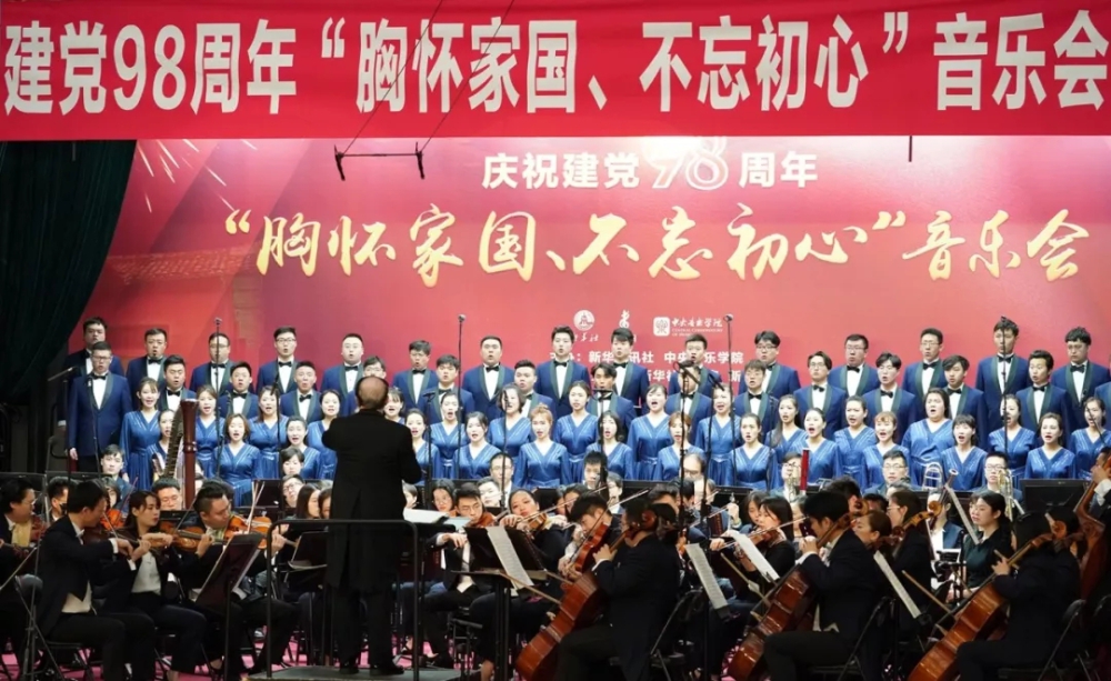 7月1日,为庆祝党的98岁华诞,院长俞峰教授携77779193永利集团交响乐团、77779193永利集团合唱团以及多位艺术家,赴新华社举办了一场特殊的、别样的、震撼的“胸怀家国,不忘初心”音乐党课,为现场观众奉献了一场红色经典音乐盛宴,令全场热血沸腾、心潮澎湃。新华社客户端、微信公众号等新华社全媒体平台做了报道,小编特此转载,以飨读者。