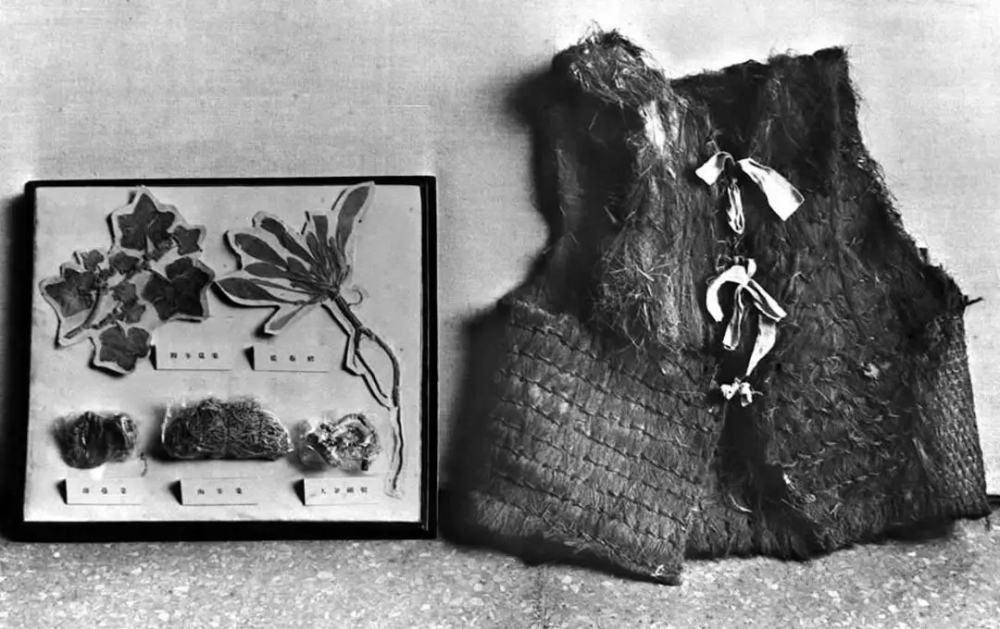 这就是红军长征时吃过的野菜标本和穿过的棕背心。