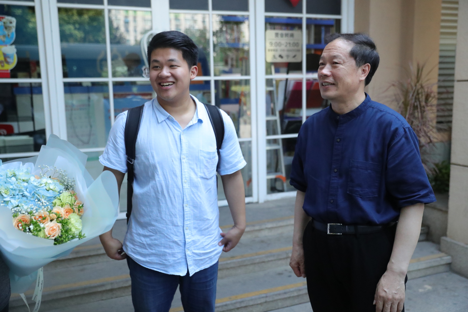 当接机车辆驶入校园门口,赵旻书记喜迎曾韵同学载誉归来。
