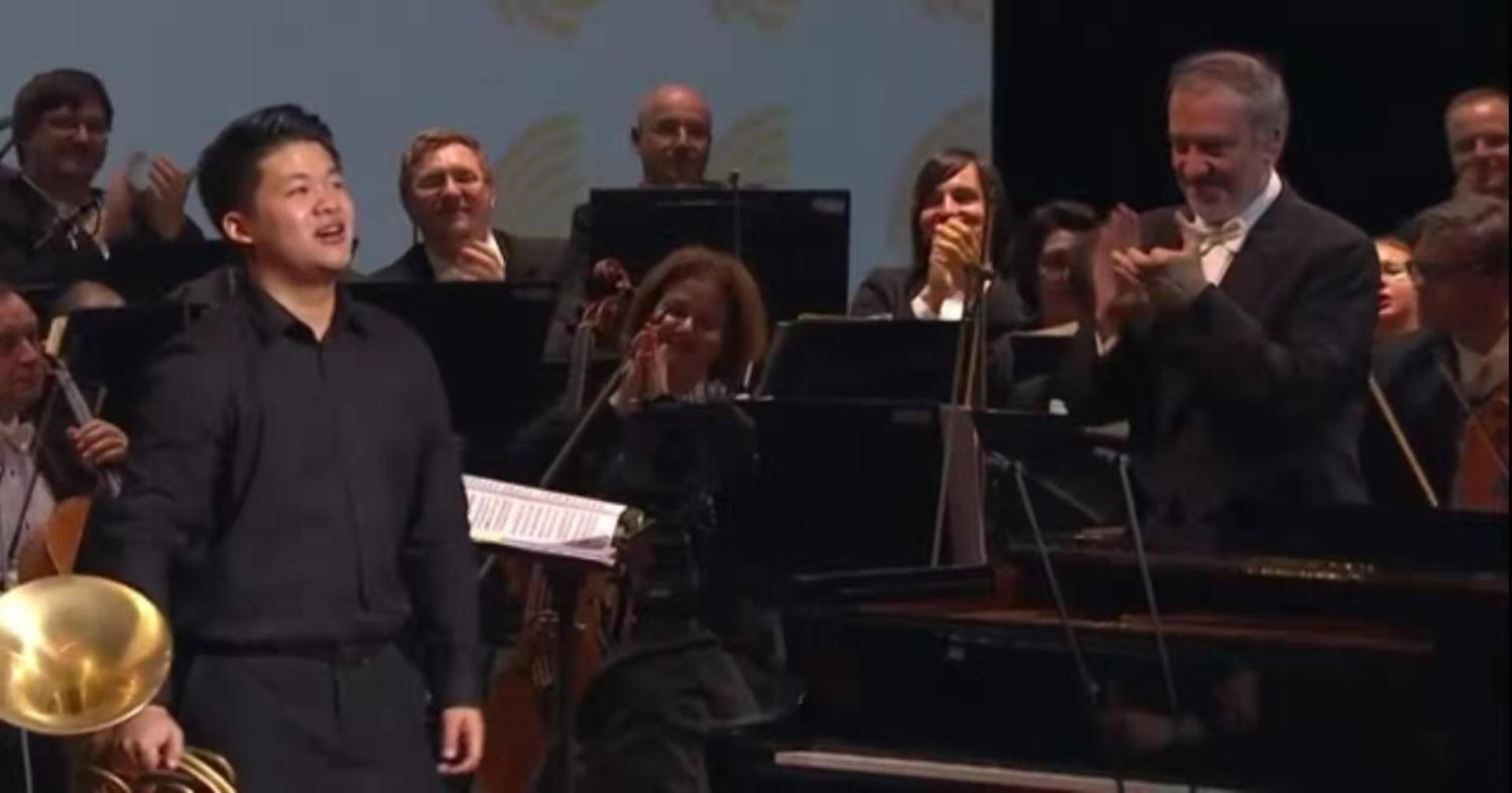6月30日晚,在圣彼得堡马林斯基2号歌剧院举办的获奖者音乐会结束时,第十六届柴可夫斯基国际音乐比赛主办人之一、俄罗斯著名指挥家捷杰耶夫特别提到了曾韵,他说:一个来自中国的选手获得了铜管组金奖,他就是曾韵,这是此次比赛的最大的惊喜!