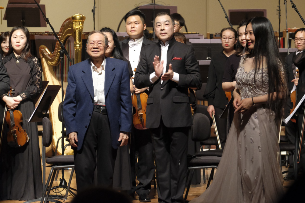 作曲家杜鸣心(左一)谢幕