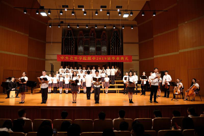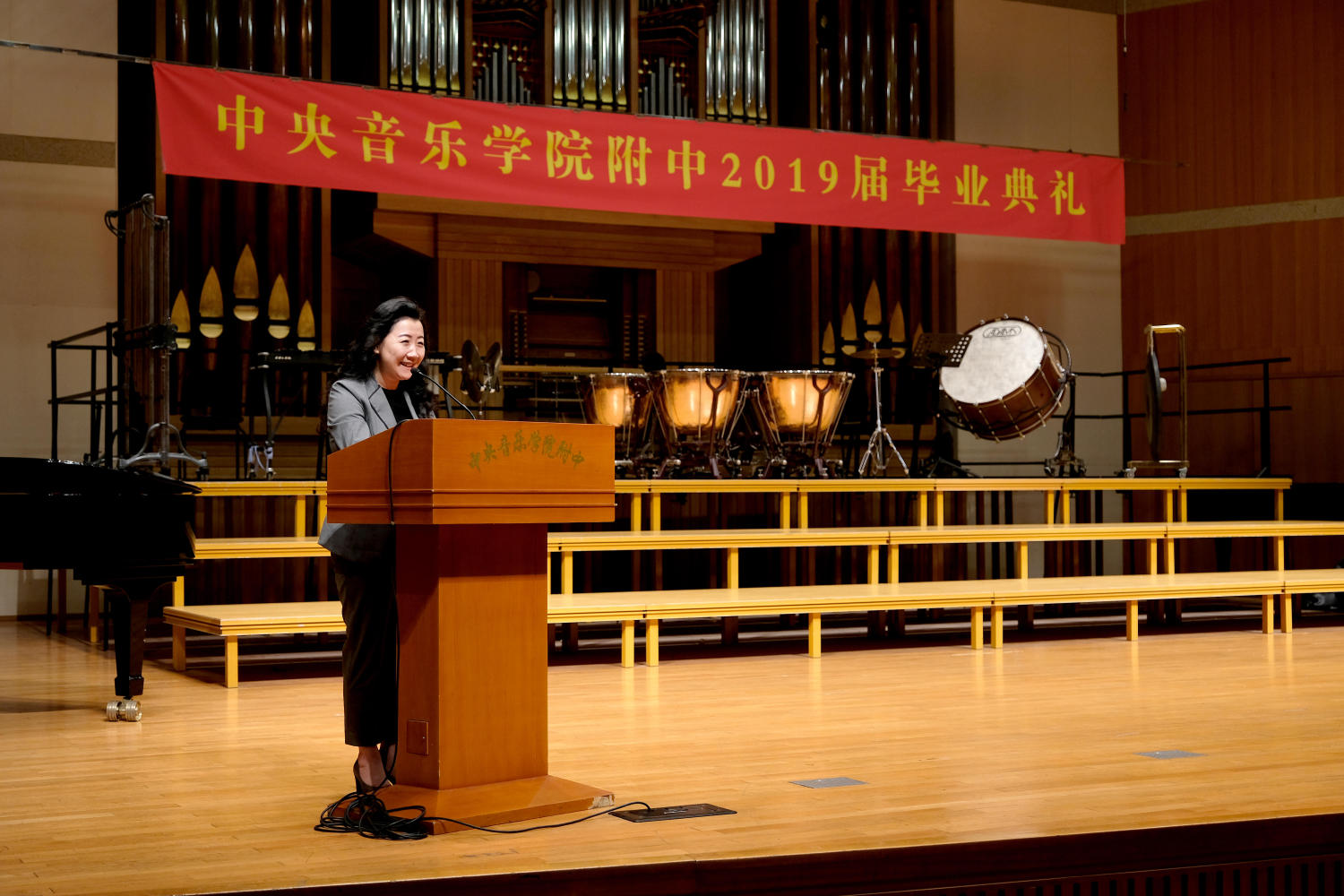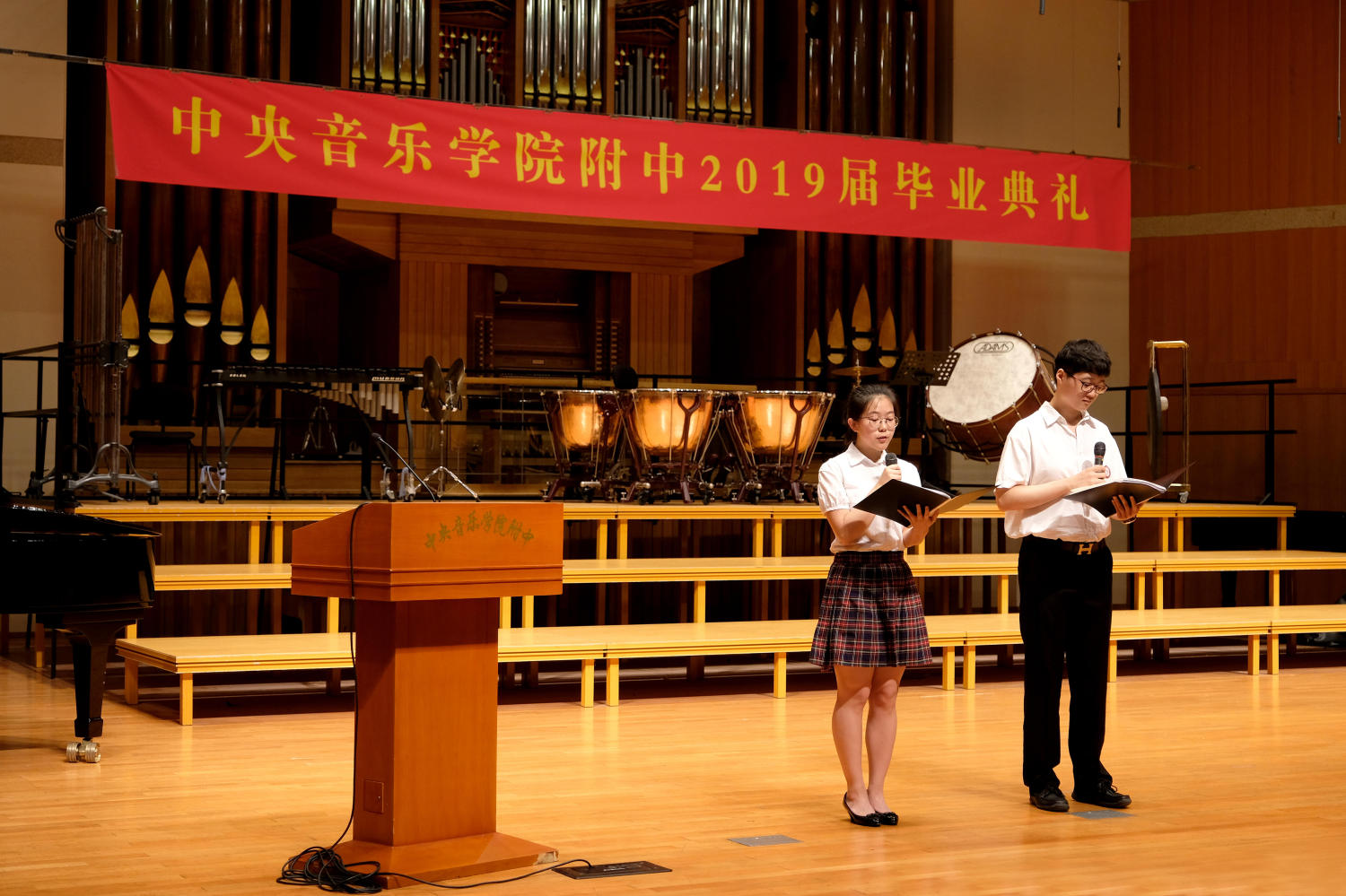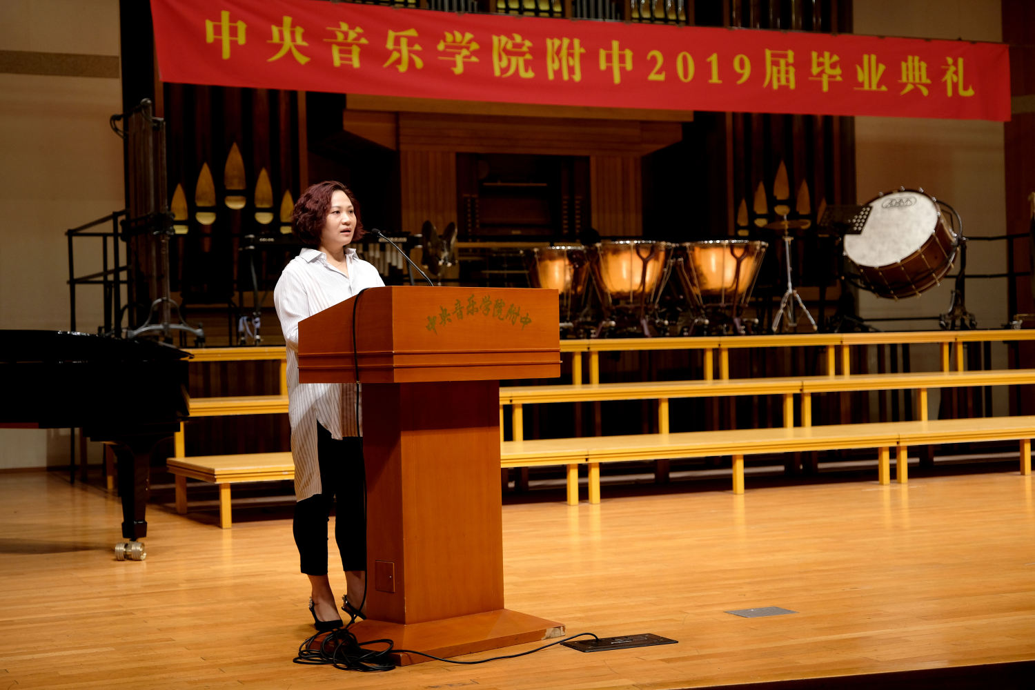 典礼由学生科科长宋涛主持。学生代表讲话回首了6年的附中生活,他们在附中不仅学到了丰富的音乐知识,还学会了尊师敬长,懂得做人,懂得承担责任。对于未来,他们憧憬到:“我们还需砥砺前行,莫要让光阴等闲度。当前,中国的发展、中华民族的伟大复兴已经进入新的阶段,这一新的阶段充满机遇和挑战。文化在民族复兴中有着重要的地位。作为未来的文化工作者,作为附中人,我们应当团结奋斗,不断创造,坚守梦想,树立起高度的文化自觉和文化自信,争取为实现中华民族文化的繁荣贡献力量,为实现中华民族的伟大复兴贡献力量。”