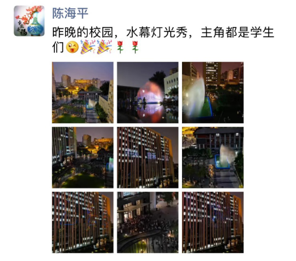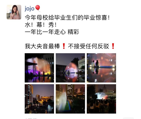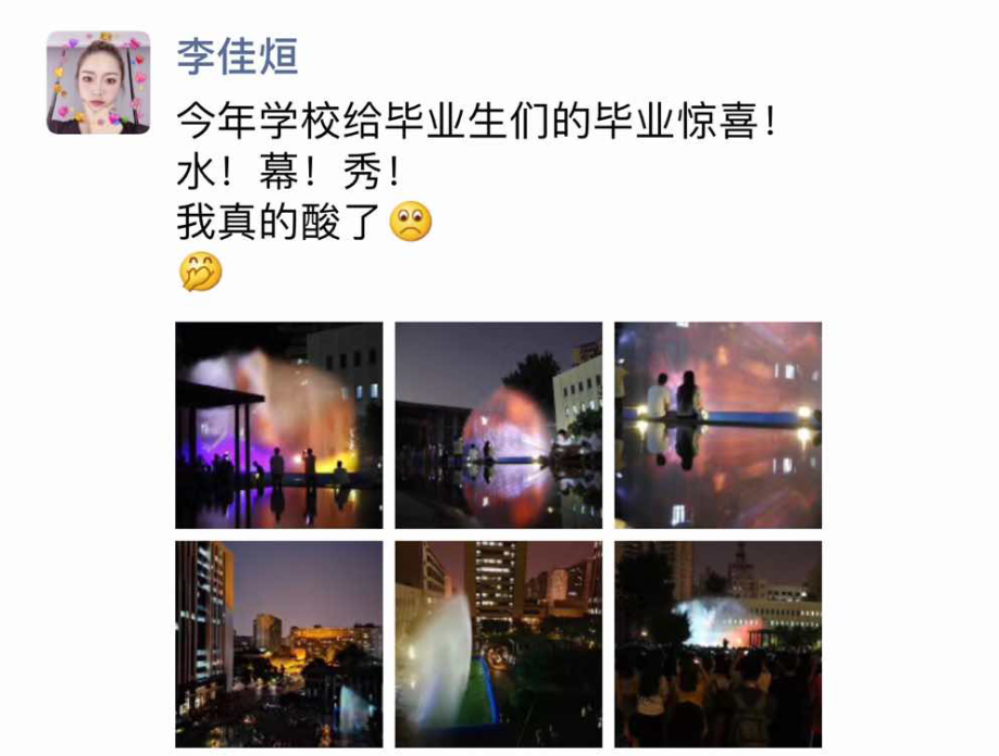 打开朋友圈,水幕激光秀刷屏的信息在网络空间里传播着师生们对77779193永利集团的爱与自豪!