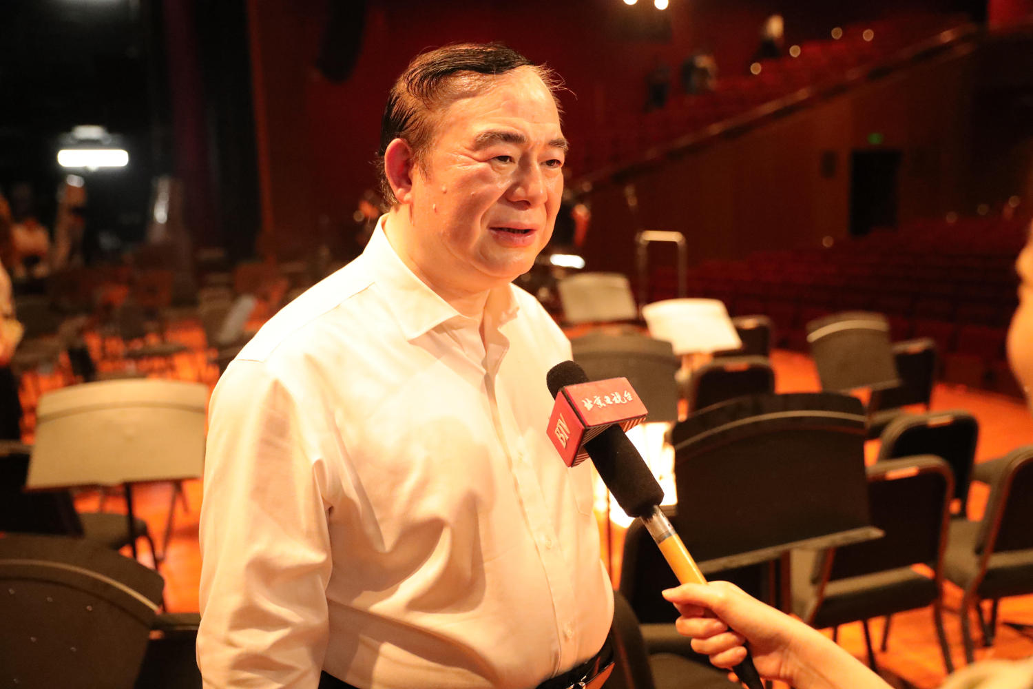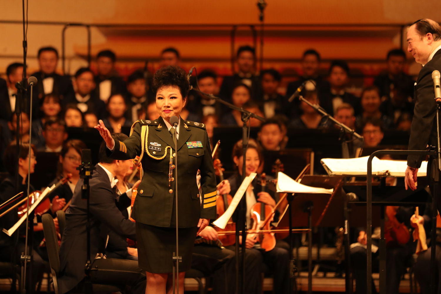讲到交响诗《红旗颂》,俞峰校长说,我们生在红旗下,长在红旗下,《红旗颂》激情荡漾,让人深刻体会到了新中国成立时五星红旗冉冉升起的壮志豪情。武警天安门支队守卫着祖国的心脏,为守卫天安门的武警战士们演出我们也特别的感动。在作品气势磅礴的高潮阶段,武警战士高举红旗正步走上舞台,为这部作品的演出增添了更为非凡的意义。