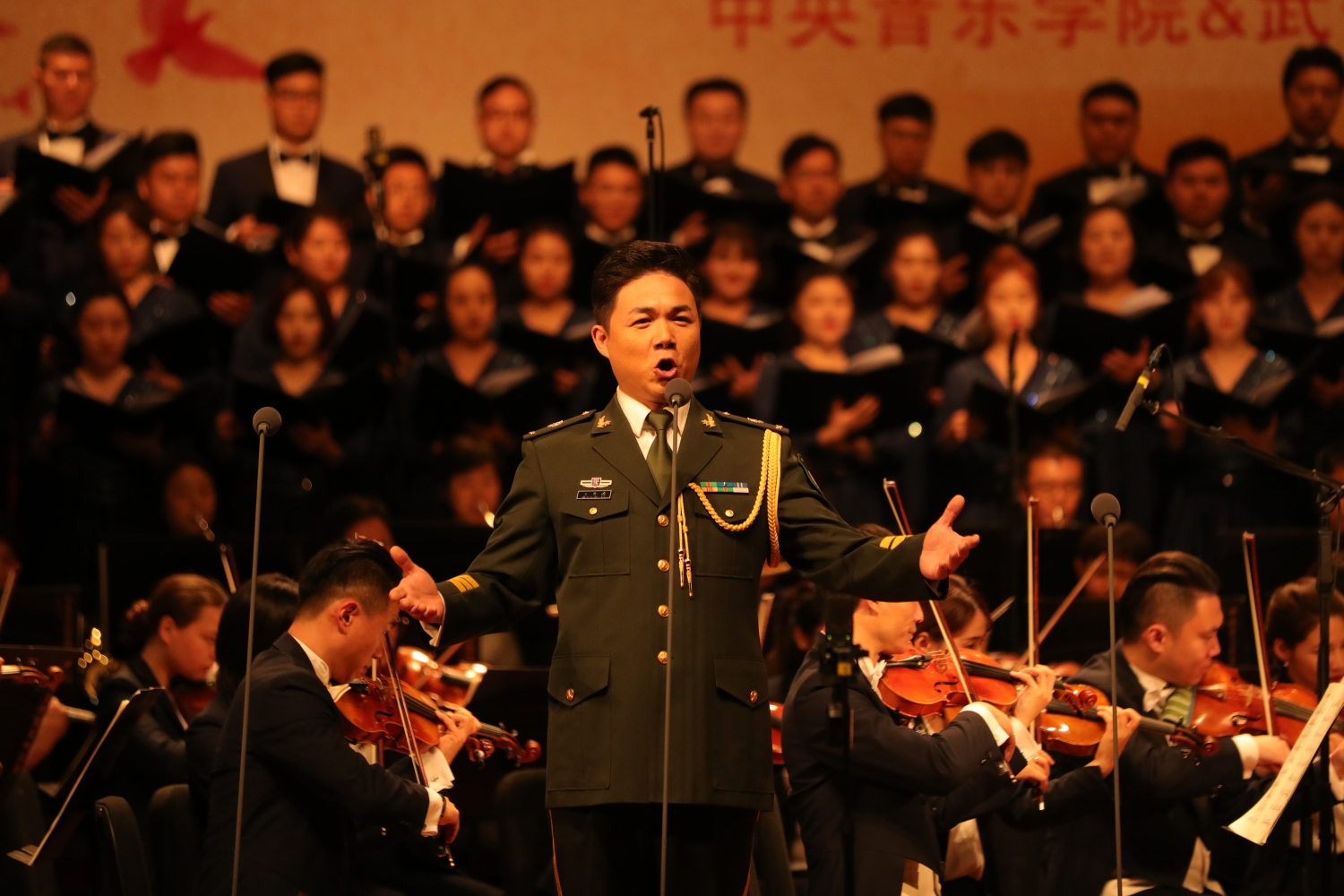 俞峰院长的忘我指挥,艺术家们的高超技艺都会令我折服,一首《红旗颂》让我心潮澎湃。对于祖国的申请敬仰,红旗的光荣神圣在我心中久久不能平息,无论今后你我走到哪,面临何种选择都应铭记在心自己曾是天安门广场的武警卫士,我们应该挺起我们这一代的民族脊梁,以党和民族的期许去自我坚持、自我规范、壮我军魂、伟我中华!
