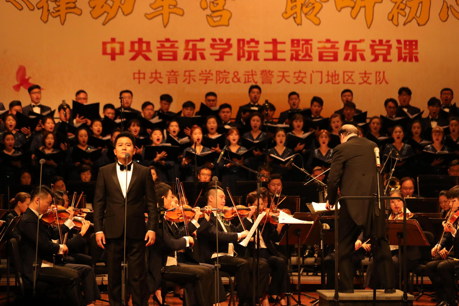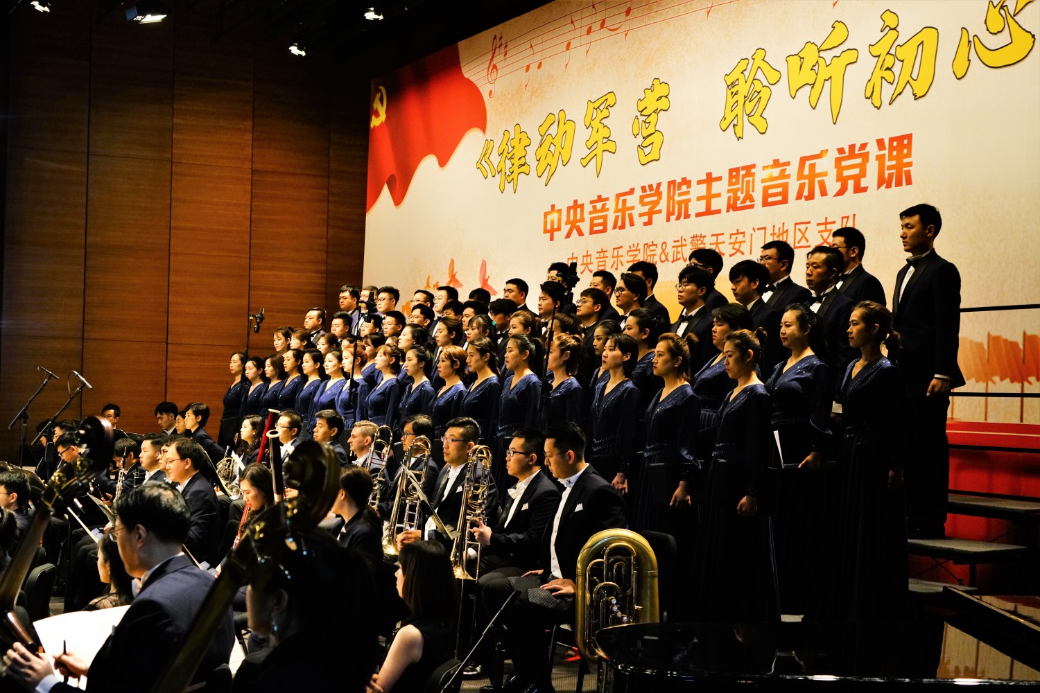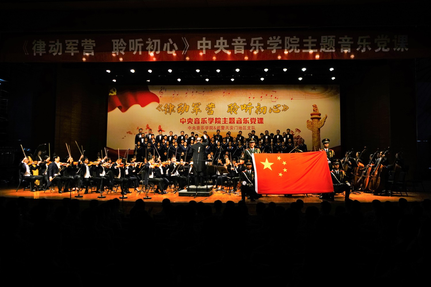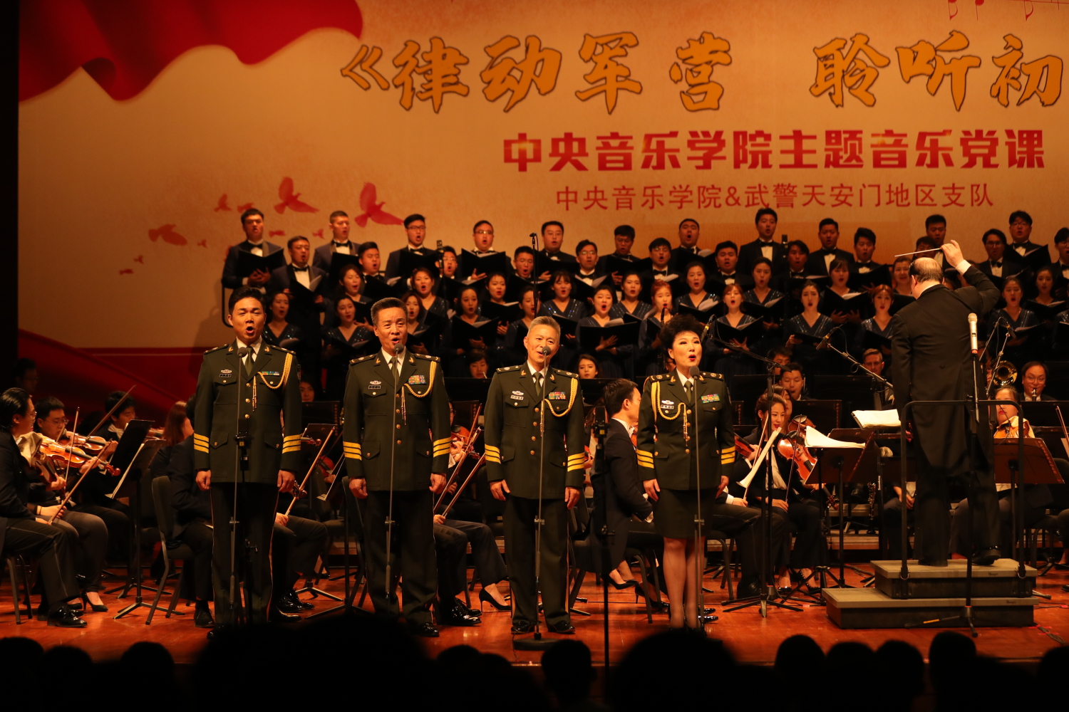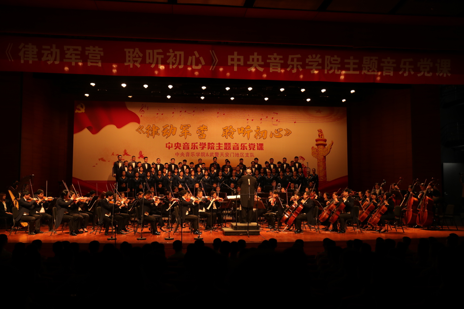 6月26日,在党的98岁华诞即将来临之际,永利联合武警北京总队天安门地区支队在国家博物馆剧场举办了一堂精彩的《律动军营 聆听初心》主题音乐党课。校长俞峰教授携77779193永利集团交响乐团、77779193永利集团合唱团,特邀著名歌唱家阎维文、王宏伟、黄华丽、王传越倾情出演,为守卫天安门的武警基层官兵奉献一场红色经典音乐盛宴。