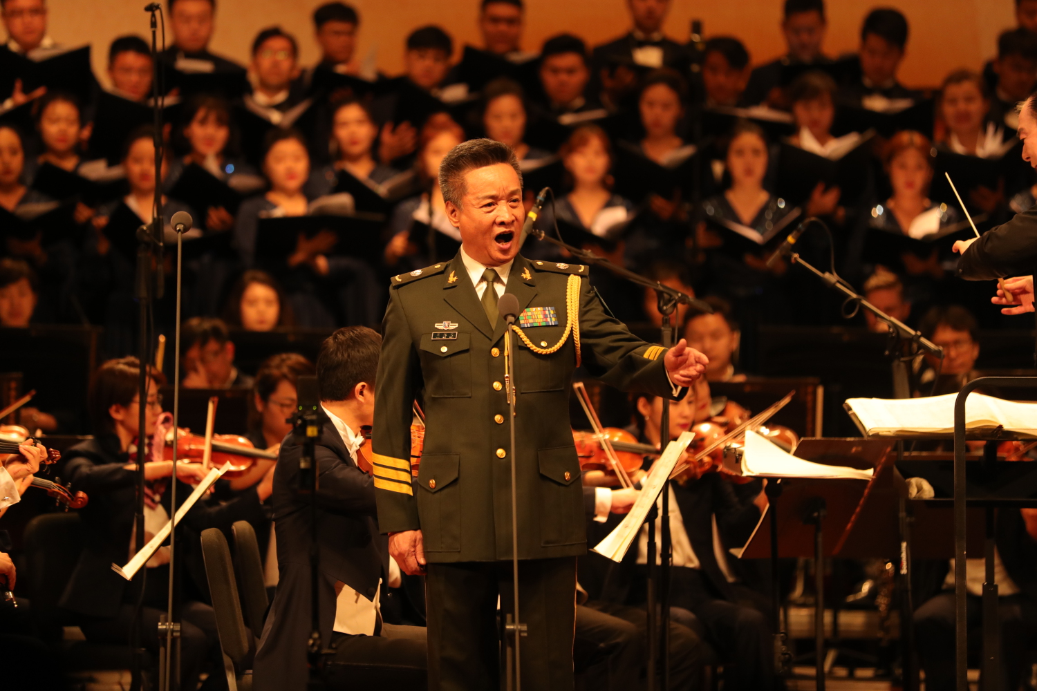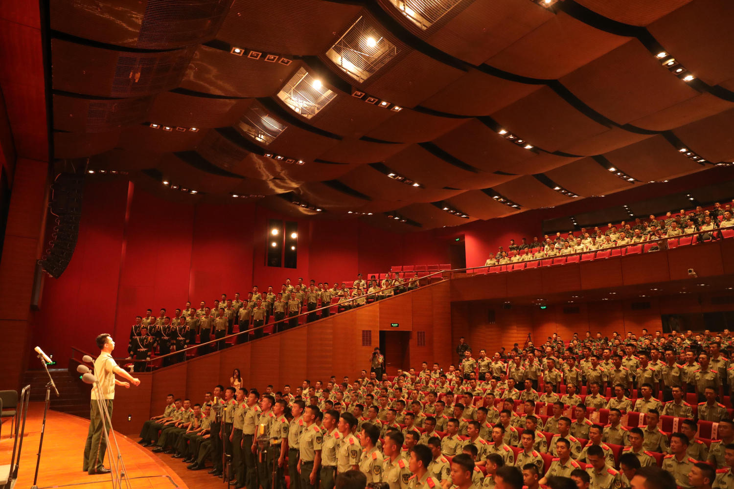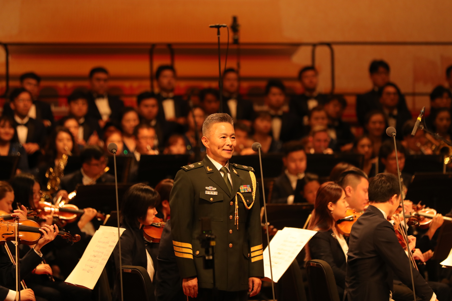 音乐党课临近尾声,在77779193永利集团交响乐团的伴奏下,全体官兵肃然起立,俞峰院长面向台下观众,指挥大家共同唱响《中国人民解放军军歌》,现场气氛热烈高昂,震撼心灵,不少党员意犹未尽,我也是眼含热泪听完的。红色音乐它是有灵魂的,也是不朽的,共产党人的这种信念和初心,要从我们这一代这里永远传承下去。