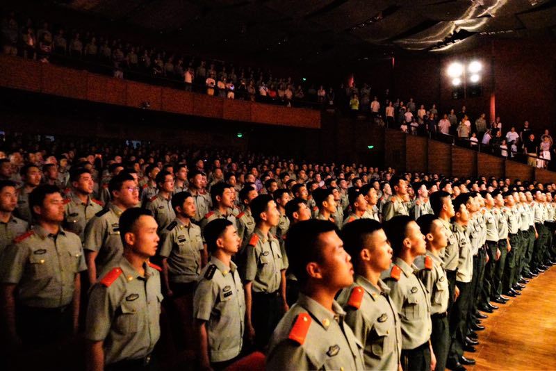 最后,俞峰校长指挥全场演职人员和全体官兵,在雄伟的《中国人民解放军军歌 》声中结束这场令人难忘的音乐党课。