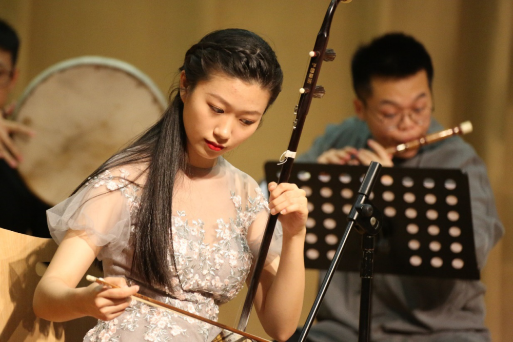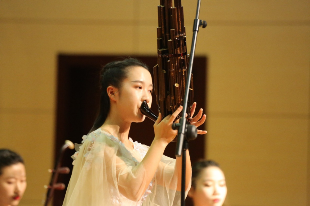 本场民乐专场音乐会精心排演了10首具有民族器乐代表性的红色经典作品,献礼新中国70华诞。开场乐曲《唱支山歌给党听》,以琵琶齐奏的形式,用山歌风味的旋律表达了对雷锋精神的赞颂。《山丹丹开花红艳艳》以传统民族乐器古筝进行演绎,深情地表达了陕北人民对家乡的赞美以及对美好未来的憧憬。二胡独奏《葡萄熟了》以新疆音乐语汇为素材,描绘了葡萄成熟收获的季节里,维吾尔族青年男女载歌载舞、喜庆丰收的欢乐情景。抗战时期,革命老区微山湖曾被称为“湖上小延安”,一曲优美灵动的笙独奏《微山湖船歌》以当地地方戏“微山湖端鼓腔”为音乐题材,用地道的地方“方言”带听众领略了微山湖优美的景色和渔民丰收的喜悦。笛子经典乐曲《秦川情》则以秦腔、碗碗腔、郿鄂调等戏曲音调为素材,描述了八百里秦川的风土人情,乐曲激昂、爽快,瞬间将观众带入“八百里秦川尘土飞扬,三千万秦人齐吼秦腔”的壮观场面中。唢呐独奏《湘江情》采用湖南民歌及花鼓戏的素材编写而成,动人的旋律表达了湘江人民对故乡的热爱和欢愉之情。民族室内乐《敦煌》、《茶马》两首曲目以“一带一路”为主线,带领观众进入到遥远而古老的“丝绸之路”,领略中西方文明交流的历史,也将音乐会带入又一个高潮。最后两首风格迥异的弹拨乐合奏《走西口》和《那拉提》让现场观众领略了西渡黄河谋生的自强不息和茫茫那拉提草原的艳阳高照,充分体现了弹拨乐的点状之美与震撼。音乐会由声乐歌剧系李舒逸同学主持。