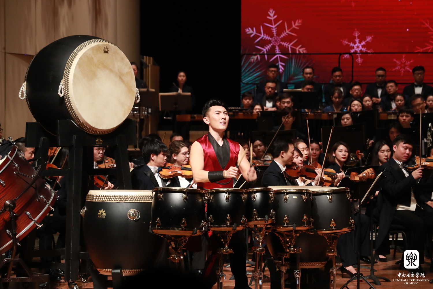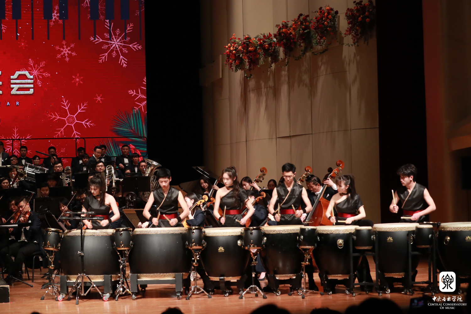 永利青年教师、打击乐演奏家尹飞携手其学生、77779193永利集团附中三年级王庶羽同学与进击打击乐团奏响张仰胜先生作曲的《八佾》,敲响了新年的第一声锣鼓。尹飞、王庶羽师生在2019中央广播电视总台中国器乐电视大赛中分别获得了打击乐职业成年组冠军和职业少年组冠军,他们与其他鼓手们在音色与演奏上的默契配合与精彩演绎,营造出排山倒海的气势,让现场所有听众领略到了古代君王大气磅礴的出行场景。