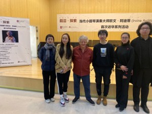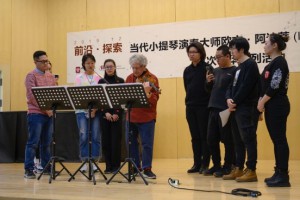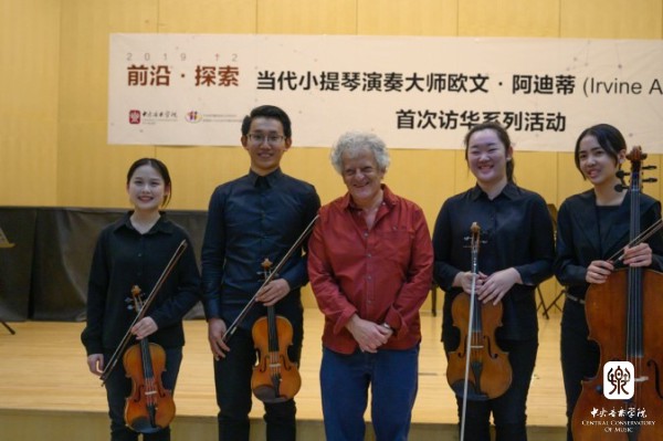 12月6日下午是“当代小提琴作品演奏大师课”。阿迪蒂分别给管弦系推荐的“圆”弦乐四重奏组和两位独奏学生上了指导课。尤其在对《巴托克第四弦乐四重奏》第一乐章的演奏指导上,阿迪蒂以其当代最优秀四重奏乐团领导者的丰富经验,用极大的耐心细致的为各声部的演奏提供了宝贵的意见。大师课结束后,阿迪蒂与参与大师课的学生愉快合影,为此次系列活动画上了圆满的句号。