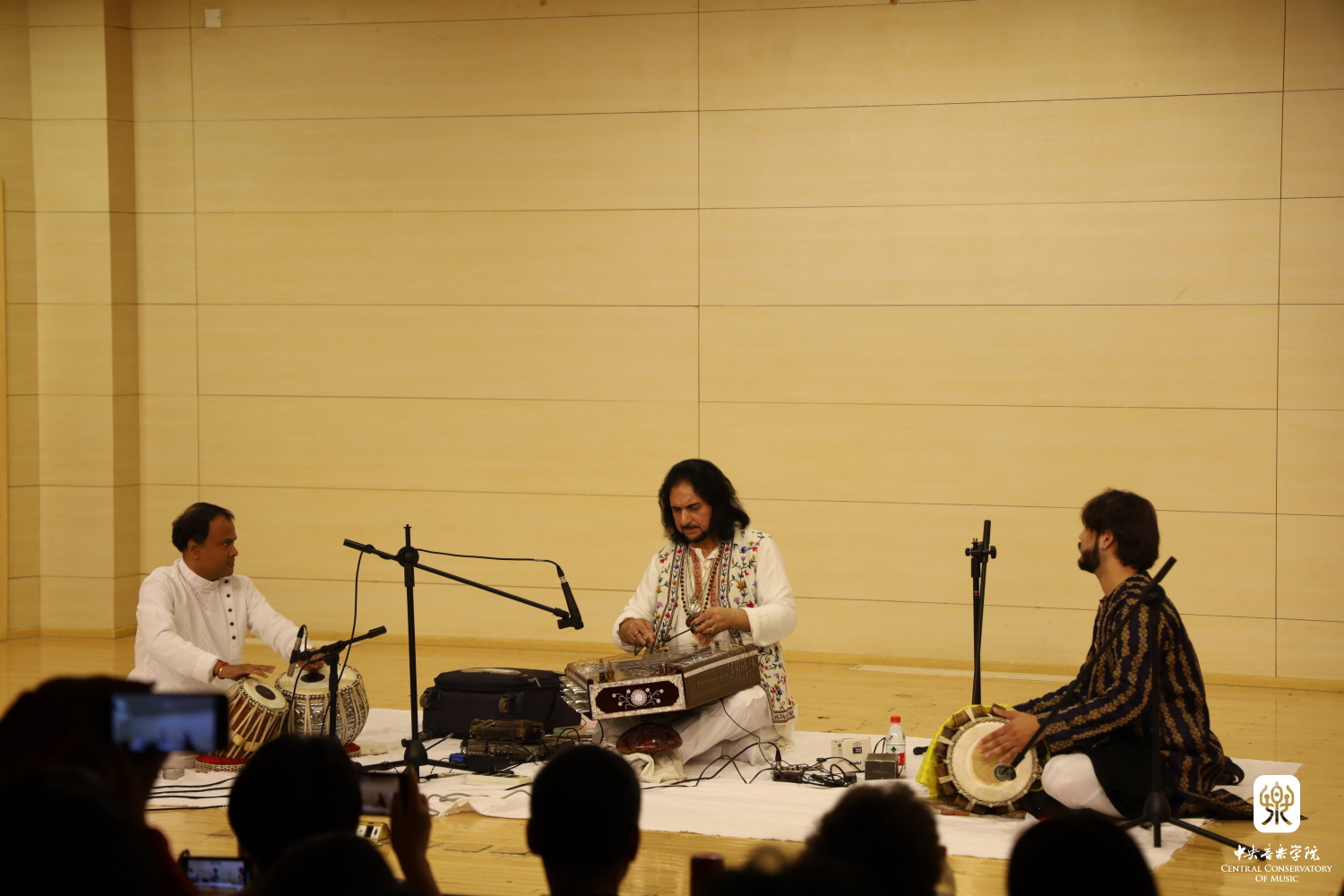 索波里大师从印度扬琴到印度古典音乐,与观众们进行了分享和交流,印度帕卡瓦吉鼓演奏家萨尔曼以及永利外聘教师、塔布拉(Tabla)鼓演奏家萨瑞特·达斯(Sarit Das)与大师共同演绎。当晚演奏两首拉格,第一首名为Kaushik Ranjani的晚间拉格,乐曲符合演出的时间与情境,期间大师带领全体观众吟唱部分旋律,加深了观众对于音乐的感受;第二首名为Kaushik Kanada的拉格,由三种不同的节奏圈(Tala)伴随演奏。音乐最后在渐强、渐快的Jhala中结束,将整晚气氛推向高潮,观众反响热烈,惊叹大师“魔术般”炉火纯青的高超技艺!在最后的问答环节观众还就具体问题进行了提问,进一步加深了观众对于印度音乐的深入理解。