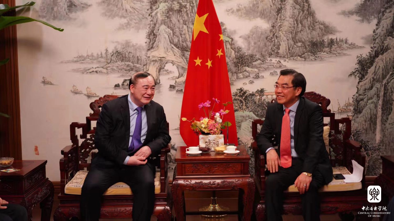 出席会见的有永利创作中心叶小纲、郭文景、郝维亚、唐建平、贾国平、陈丹布、常平教授和表演艺术中心主任赵瑞林教授,国际交流处处长陶倩、院长办公室主任王歆等陪同会见。