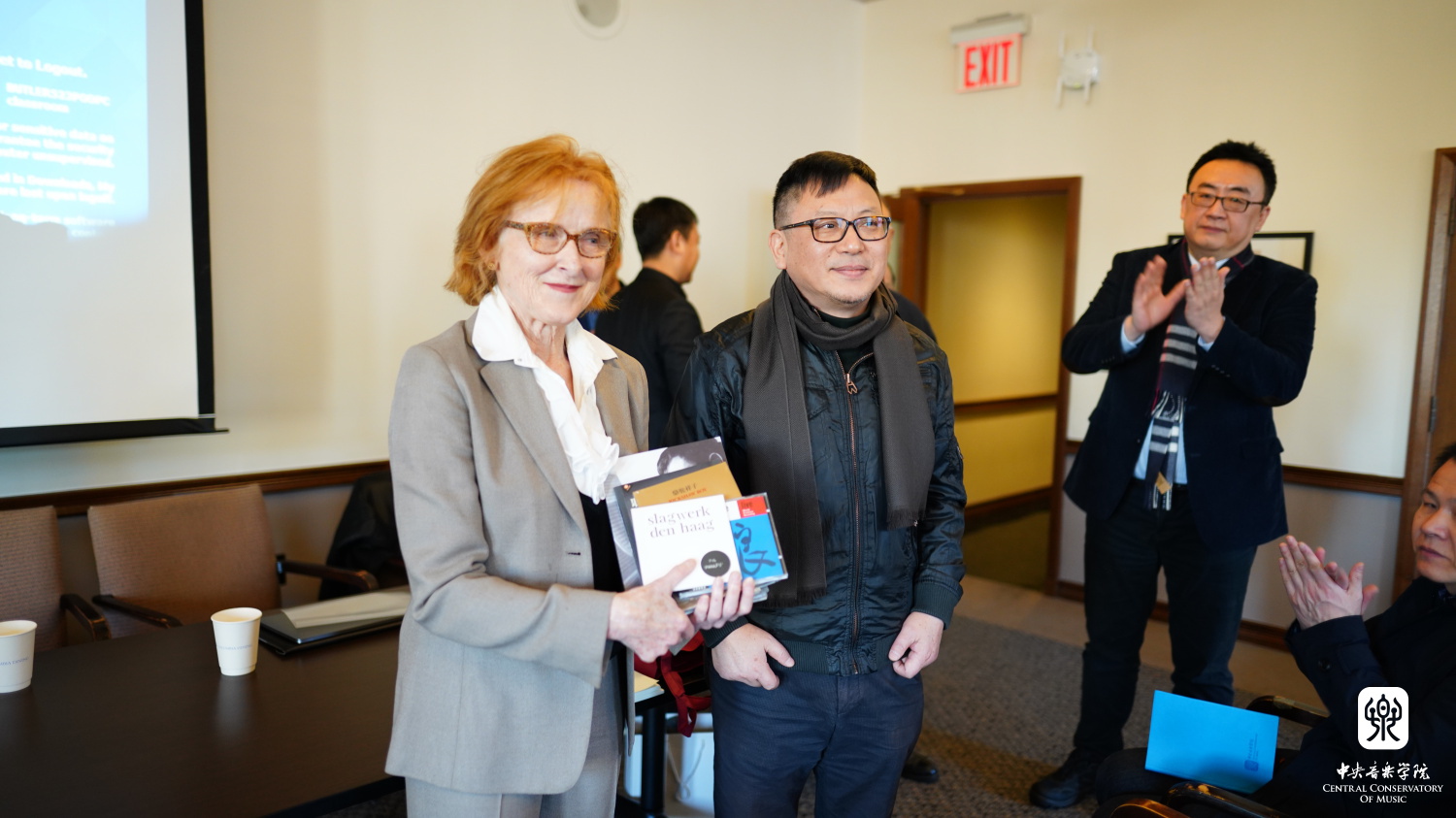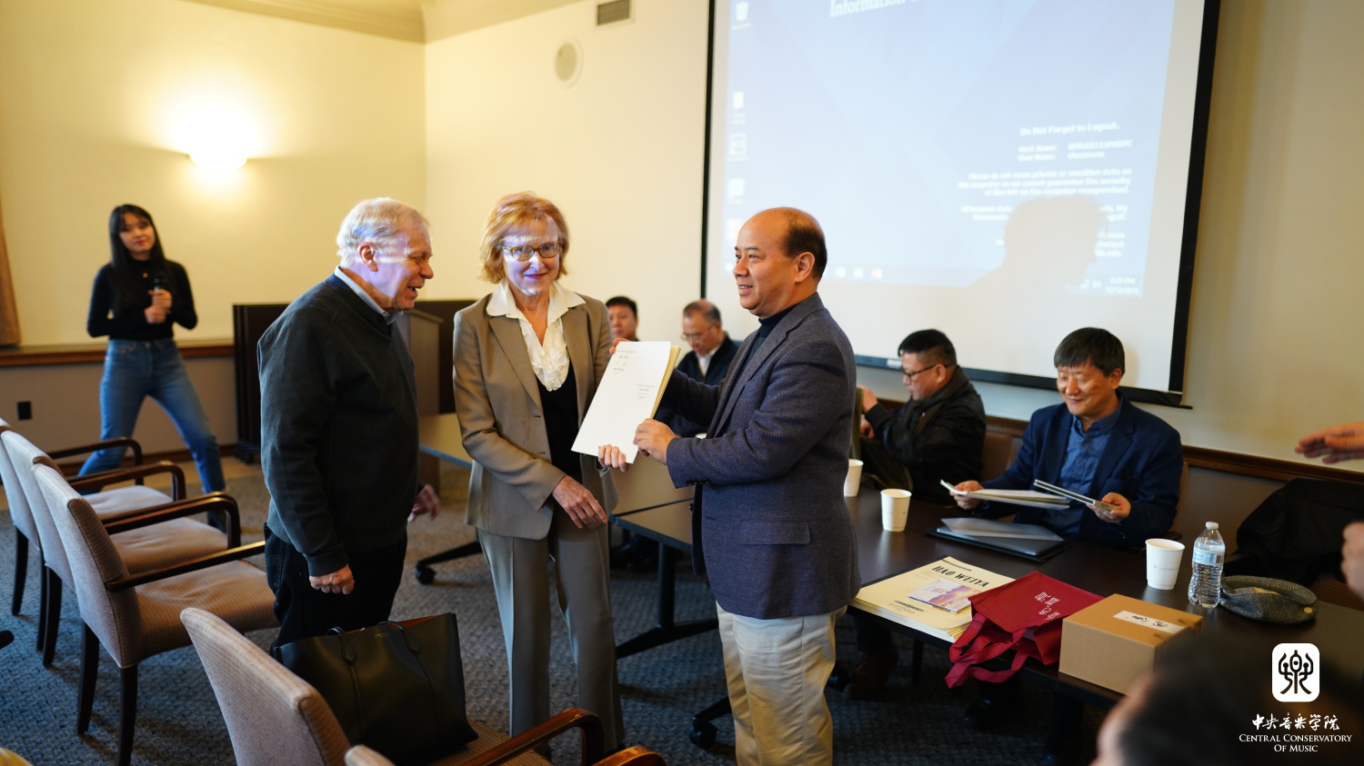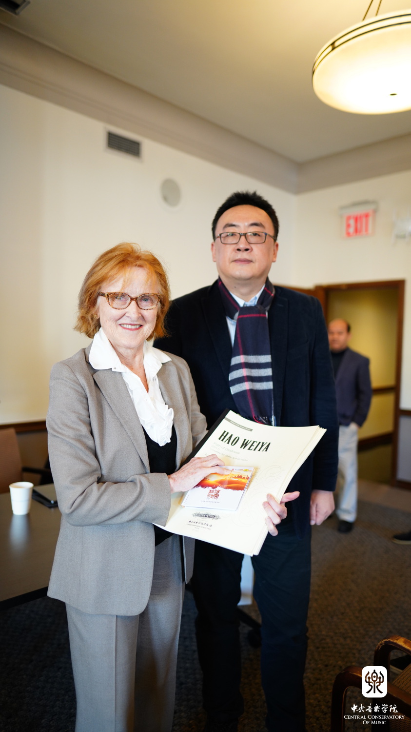 交流活动由作曲系主任郝维亚教授主持,他首先感谢了主办方的邀请和对活动的组织、安排。随后,参加活动的几位作曲家分别向哥大图书馆赠送了乐谱、音像或纪念品。