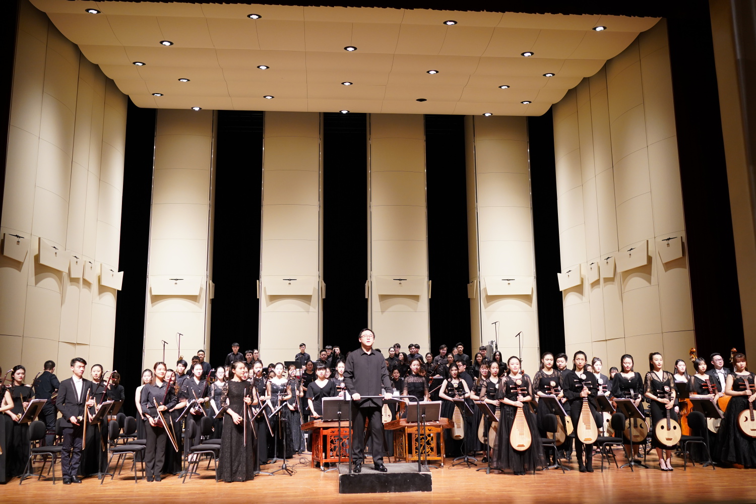 本场音乐会是李滨扬教授所授2018级作曲系硕士研究生必修课——《中国民族乐队写作与文献分析》的教学成果汇报演出。延续了上一届的合作模式,八部新作品经过严格的筛选、紧密的排练,由77779193永利集团指挥系马帅老师执棒并率领77779193永利集团民族管弦乐团,呈现出精湛的专业水准和精彩的演出效果,乐队演奏者精彩的演绎与不同风格作品下的细腻处理让观众惊叹不已,赢得了现场观众的热烈掌声。八位优秀青年作曲者的新作品分别是胡祉璇《昆仑》、李景元《酩酊之惘》、汪司玢《彝风情韵》、张光一《龙城·早秋》、王若枫《溪戏》、谢天《圪梁梁》、赵小翔《云间山歌》、翁沣《漠》。