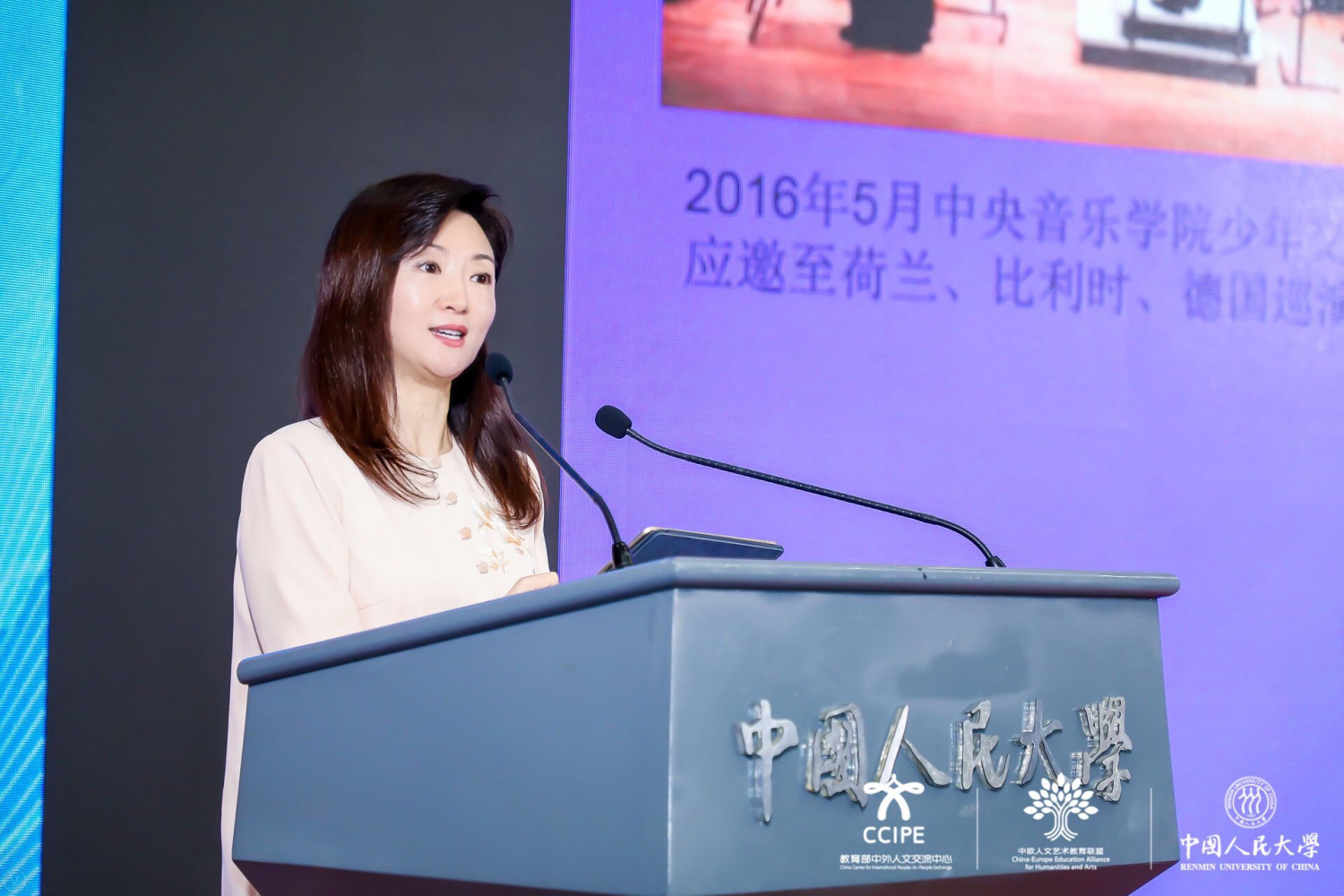 2019中欧人文艺术教育论坛由中国教育部中外人文交流中心主办,中欧人文艺术教育联盟和中国人民大学承办。作为中欧人文艺术教育联盟开展的第一次论坛,邀请了北京市市委常委、北京市教工委书记、国家大剧院院长王宁先生,文化和旅游部党组成员、故宫博物院院长王旭东先生,中国人民大学党委书记靳诺女士、教育部中外人文交流中心主任杜柯伟先生、教育部国际司副司长李海先生、文化和旅游部国际局二级巡视员项晓炜先生、外交部欧洲司参赞林航女士、意大利驻华使馆文化参赞孟斐璇先生等嘉宾以及来自北京市委宣传部、中国文化产业发展集团有限公司、中国电视艺术家协会、英国中央兰开夏大学、北京舞蹈学院、北京师范大学艺术与传媒学院、中央戏剧学院、中国服装协会等多位专家一同参会,就青少年人文艺术教育、新文旅、人文艺术教育与科技创新、人文艺术作品的翻译和跨文化传播等多领域展开了热烈的讨论,共同为人文交流事业献言建策。作为主旨演讲嘉宾中唯一一位音乐家,于红梅副院长代表77779193永利集团、代表俞峰院长向中欧人文艺术教育论坛的成功举办表示衷心祝贺!