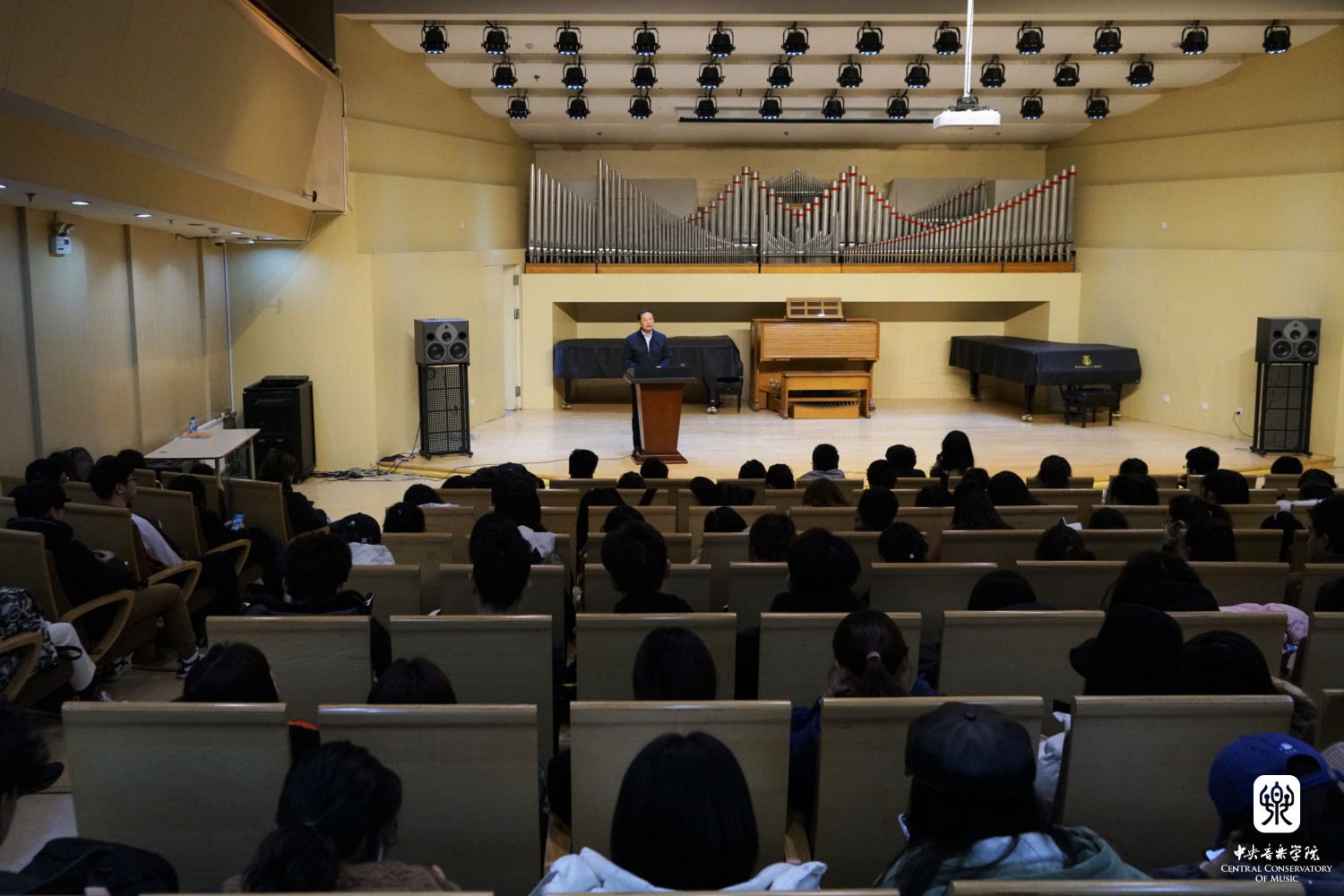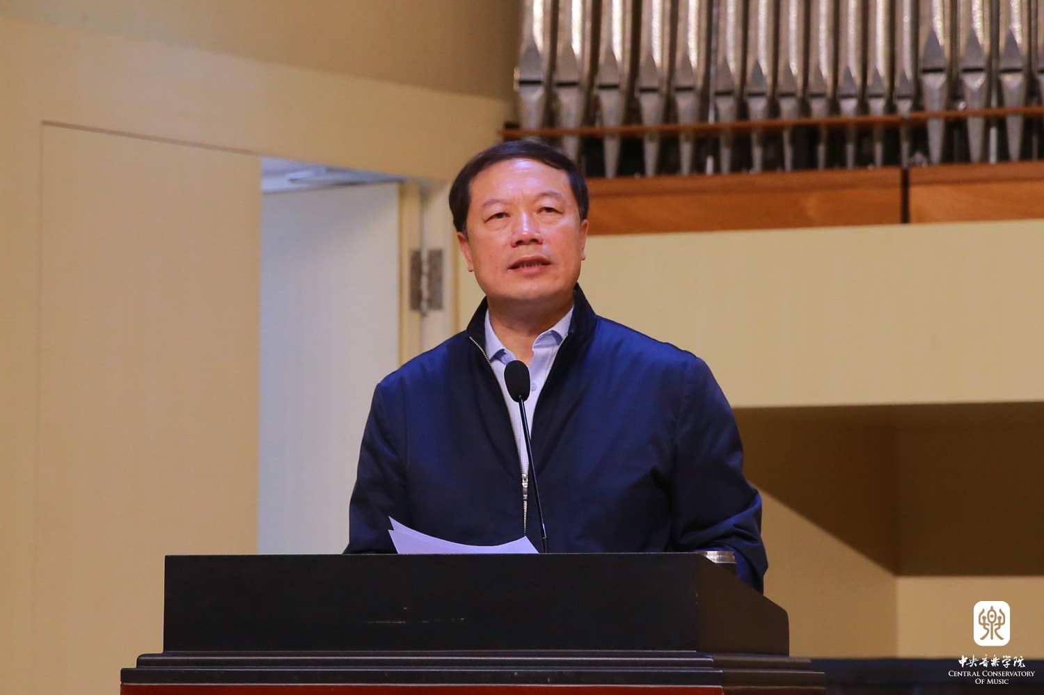 2019年12月4日,赵旻书记为本科一年级学生讲授了一场题为“树立远大理想,增长学识才干”的思政课。赵书记从党的教育方针和文艺方针讲起,鼓励同学们要奋发学习,努力成才。他说,同学们选择艺术这条道路,即是选择了一条艰苦努力的道路、奋斗的道路、创造美的道路和不断超越自己的艺术之路,音乐舞台上的鲜花与掌声,是“技不离手、曲不离口”不懈努力的结果。赵书记的报告分为三个部分,大学职能的演进,大学生的责任和使命,如何度过大学生活。
