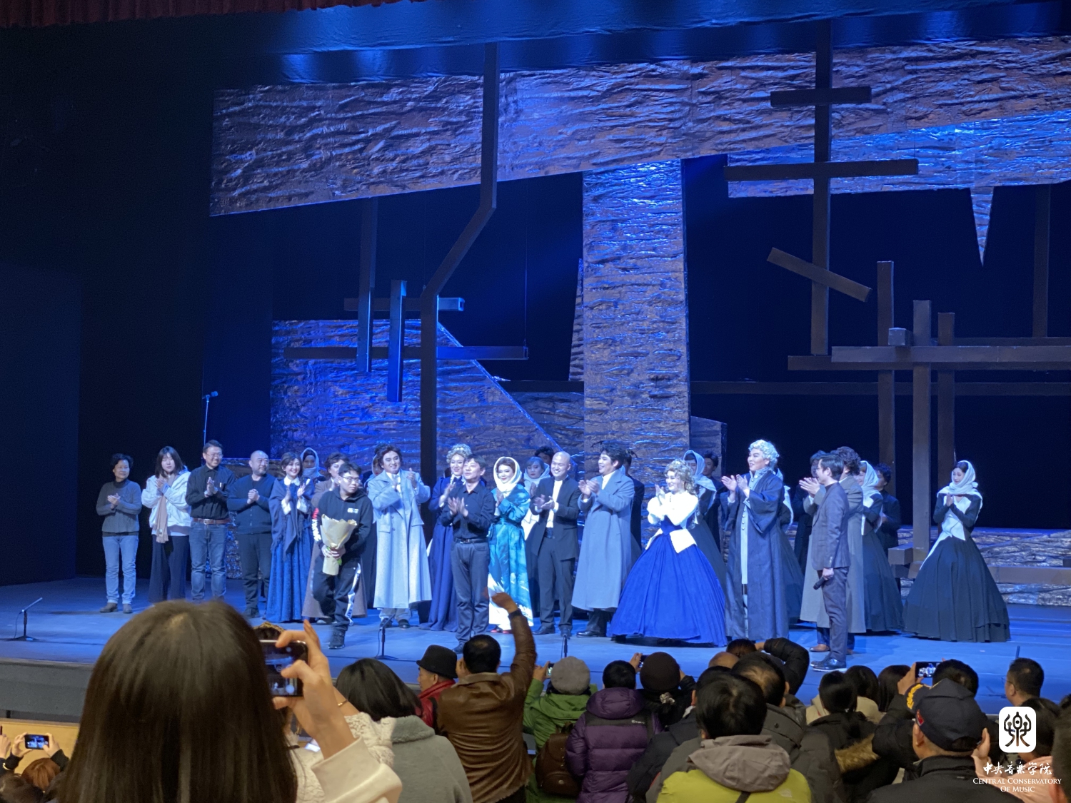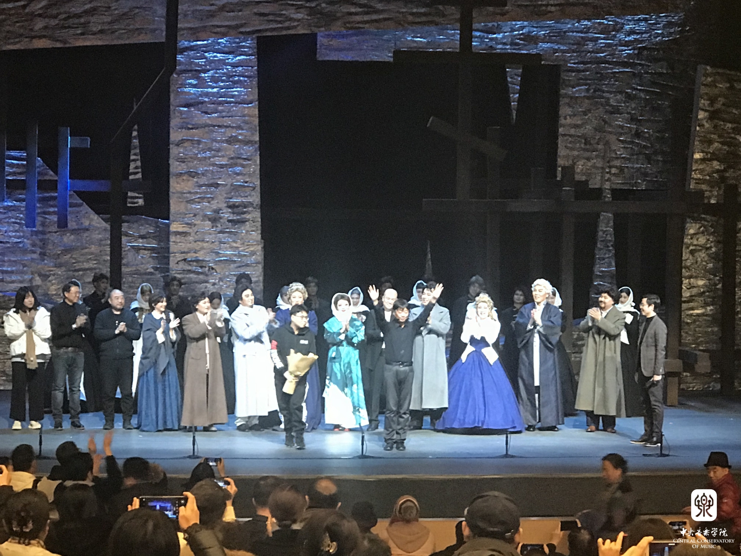 值得一提的是,音乐创作和唱腔风格上,歌剧《复活》采用中俄艺术家合作的方式。序曲、合唱和过场音乐由俄罗斯著名作曲家创作,而咏叹调、宣叙调这些唱腔部分主要由作曲家刘思军教授来完成。在这部作品中,观众不仅能看到当时沙俄时期的各种文化,在表述上又吸收了中国戏曲的形式。“歌剧的唱段旋律精彩,伴随着编剧的剧情跌宕起伏,深入人心,女主角玛斯洛娃的扮演者由我院声歌系宋元明老师担纲,男主角聂赫留朵夫由国家大剧院驻院男中音歌唱家张扬老师饰演,他们对于剧中人物尺度的把握恰到好处,刻画得惟妙惟肖,栩栩如生,极大地渲染了该剧的艺术表现力”,作曲家刘思军与我们分享该剧时说道。