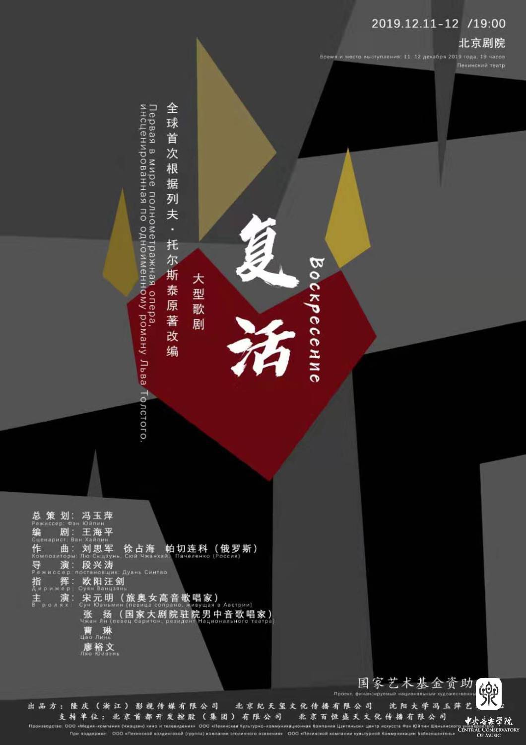2019年正值中俄建交70周年,12月11日晚,由永利音乐人工智能与音乐信息科技系刘思军教授创作、永利声乐歌剧系教师、女高音歌唱家宋元明担纲女主角的歌剧《复活》在北京剧院成功上演!此剧是根据托尔斯泰小说原著改编的同名歌剧,由冯玉萍担任总策划,王海平编剧,段兴涛执导,张杨担纲男主角,讲述了男主人公涅赫柳朵夫与女主人公玛斯洛娃的情感故事。作为世界名著经典,《复活》不仅是首次在国内以歌剧形式改编托翁小说的作品,在世界范围内也属首创。