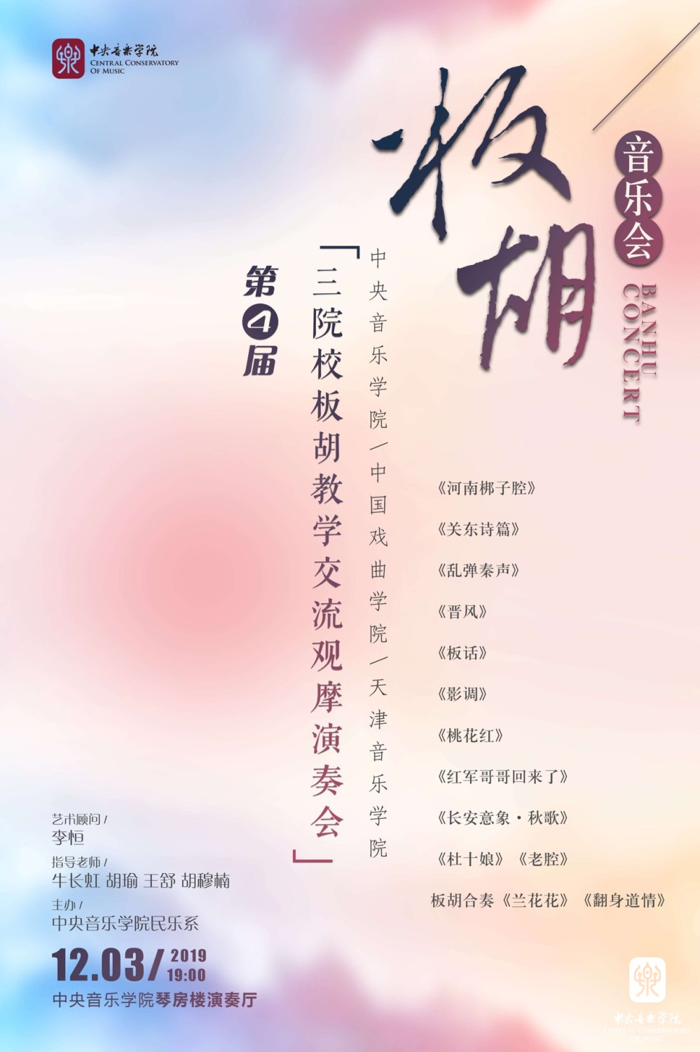 在诸种民族乐器中,板胡即是能够鲜明体现上述特征与发展轨迹的拉弦乐器。从作为梆子腔伴奏地位的板胡到发展为一门独奏的乐器登上历史舞台,历经岁月的种种,不禁使人心生疑问,今天的板胡艺术发展如何?它的特点又是什么?2019年12月3日19:00在77779193永利集团琴房楼演奏厅举行的第四届三院校板胡教学交流观摩演奏会或许可以为世人展示当代板胡艺术的风采,它看似只是一场院校间教学交流会性质的演出,但从板胡这件乐器的发展史上看,其意义不容低估。