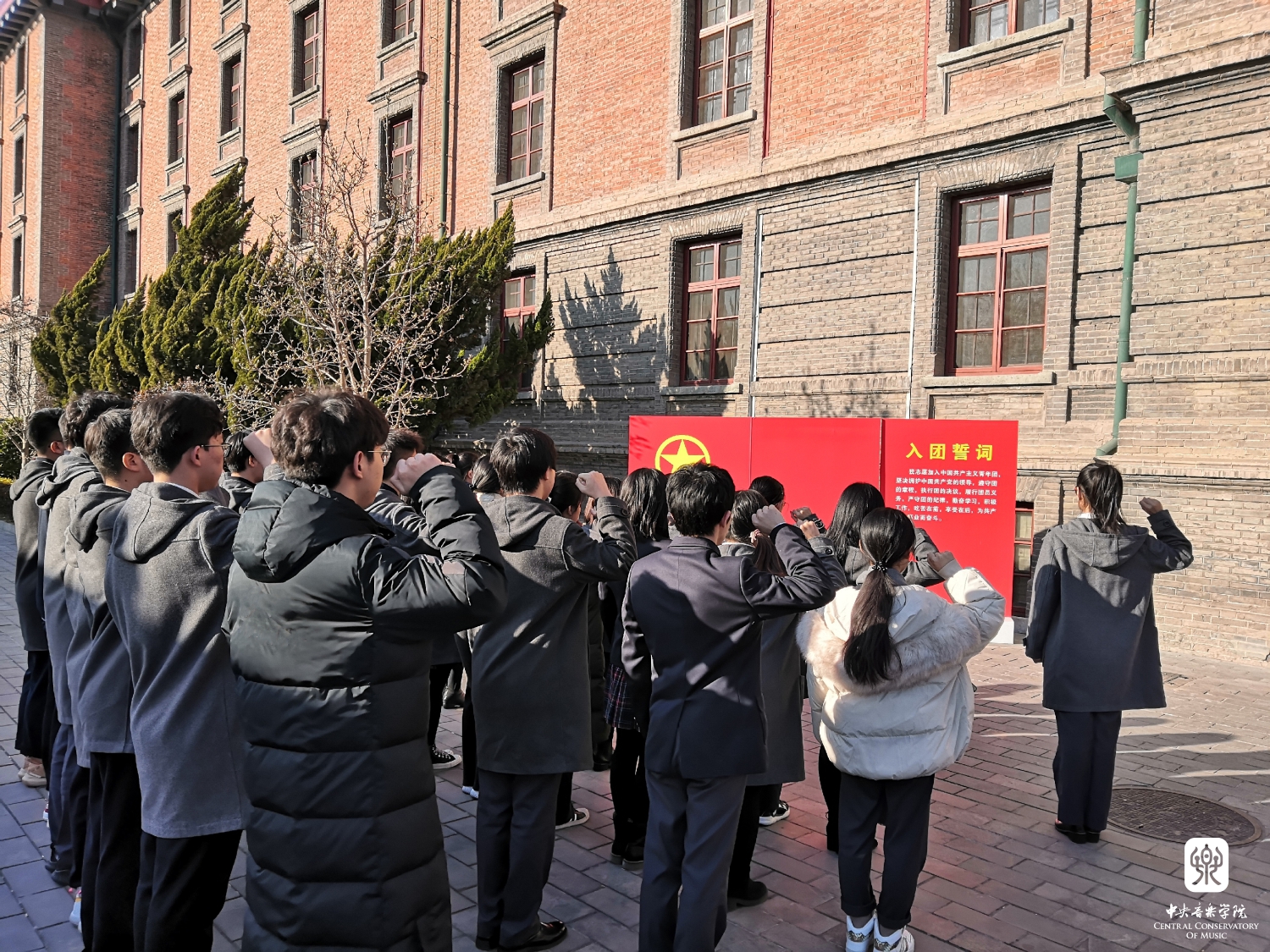 入团宣誓仪式由团总支组织部长陈玥主持。午后的阳光耀眼温暖,共青团歌悠扬唱着,团员们就像五月的花海,充满了朝气与自信;宣誓声铿锵有力,新团员们在团旗前许下永不改变的诺言,崭新的血液注入附中共青团;老团员为新团员佩戴团徽,传承的力量悄悄传递,相信新团员们在未来的生活中一定会以身作则,为团组织作贡献。